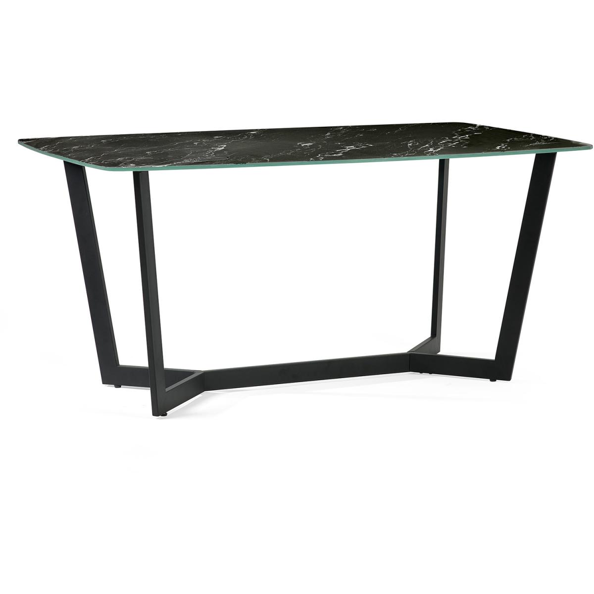Inspired by beautiful Italian marble, the Olympus dining table delivers character and glamour to your space. With statement, contrasting black bases supporting a glass top printed with marble effect detail, this look is destined for any contemporary home. Matching living collection available to complete the look. Paired with Luxe Chairs.