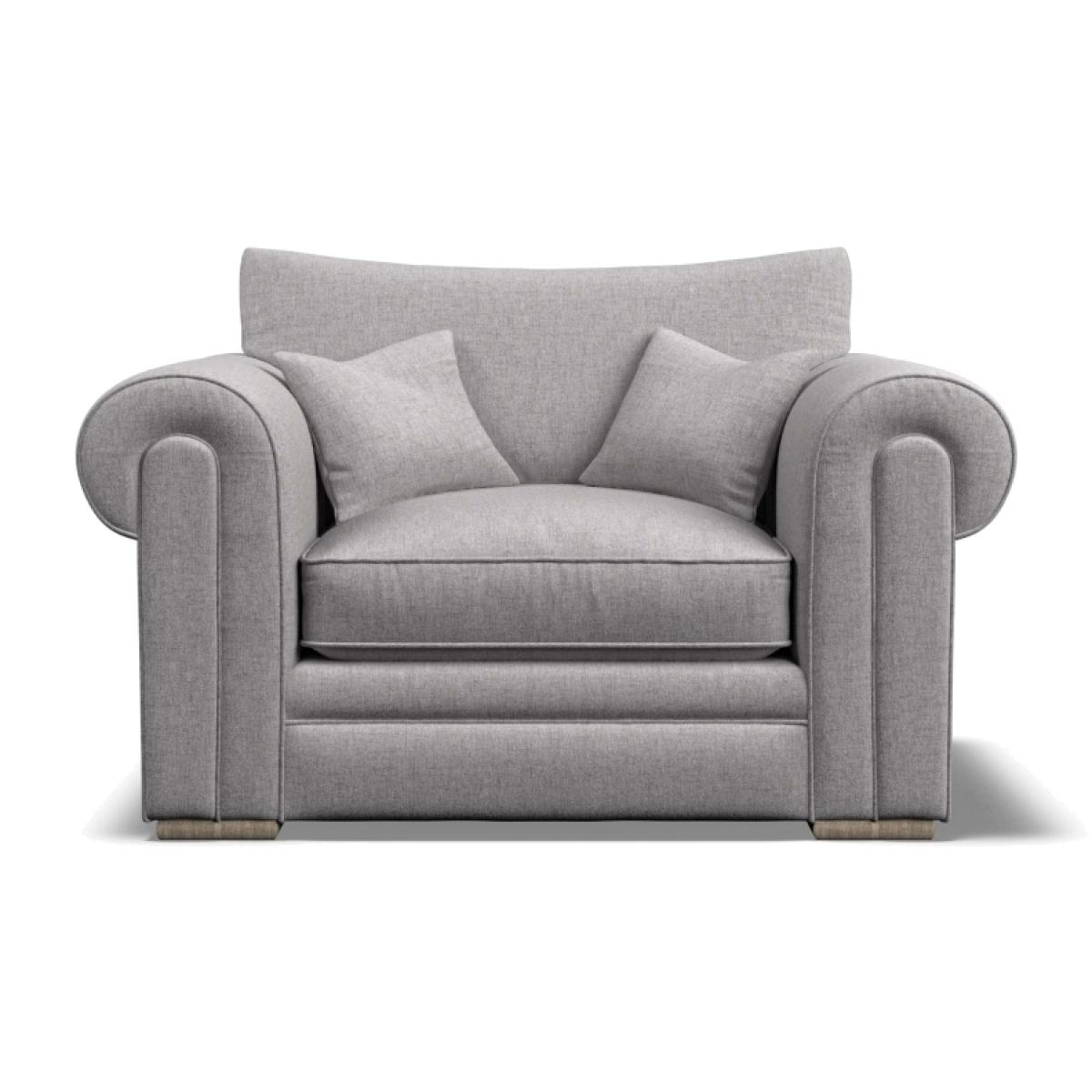 Designed for those who crave space without compromising on style, the Olympus Standard Back Fabric Snuggler is the perfect blend of generous proportions and refined elegance. More than just a chair, this oversized snuggler invites you to curl up solo or cuddle close with someone special. Upholstered in premium, soft-touch fabric and crafted with Whitemeadow’s signature British quality, the Olympus Snuggler boasts deep, supportive cushions and a sturdy hardwood frame built to last. Its clean lines, gently flared arms, and plush scatter cushions add a touch of modern luxury to any living space. Whether you're reading, relaxing, or indulging in a lazy Sunday, the Snuggler delivers unrivalled comfort with contemporary charm. Available in a range of beautiful fabrics to suit your style, it’s not just a seat – it’s your new favourite spot! Features: Hardwood Frame Sustanably Sourced in the UK by skilled craftsmen. The bounce back foam seat cushions are ultra-low maintenance and offer a comfortable cocoon of support. Generously sized for maximum comfort Standard back cushions for balanced support Soft, durable fabric upholstery Split design for easy access and delivery Modern yet versatile aesthetic Choose Walnut or Weathered Oak Wood or a Chrome Metal option. Dimensions: Height: 92cm Width: 154cm Depth: 105cm All screens vary in colour reproduction and whilst every effort has been made to display the colour as accurately as possible it is for guidance only.