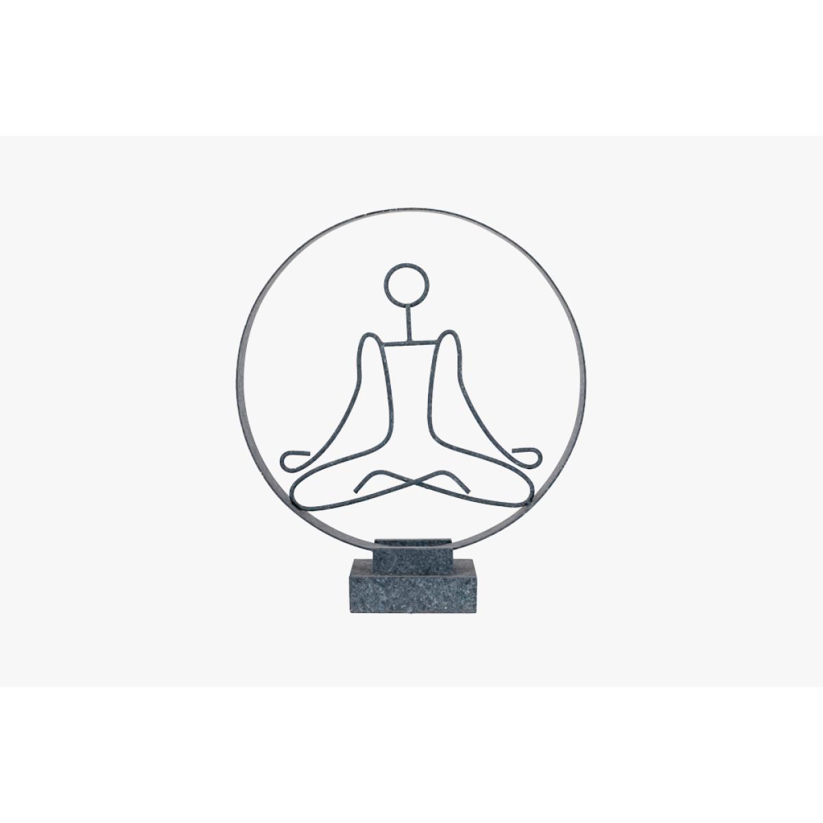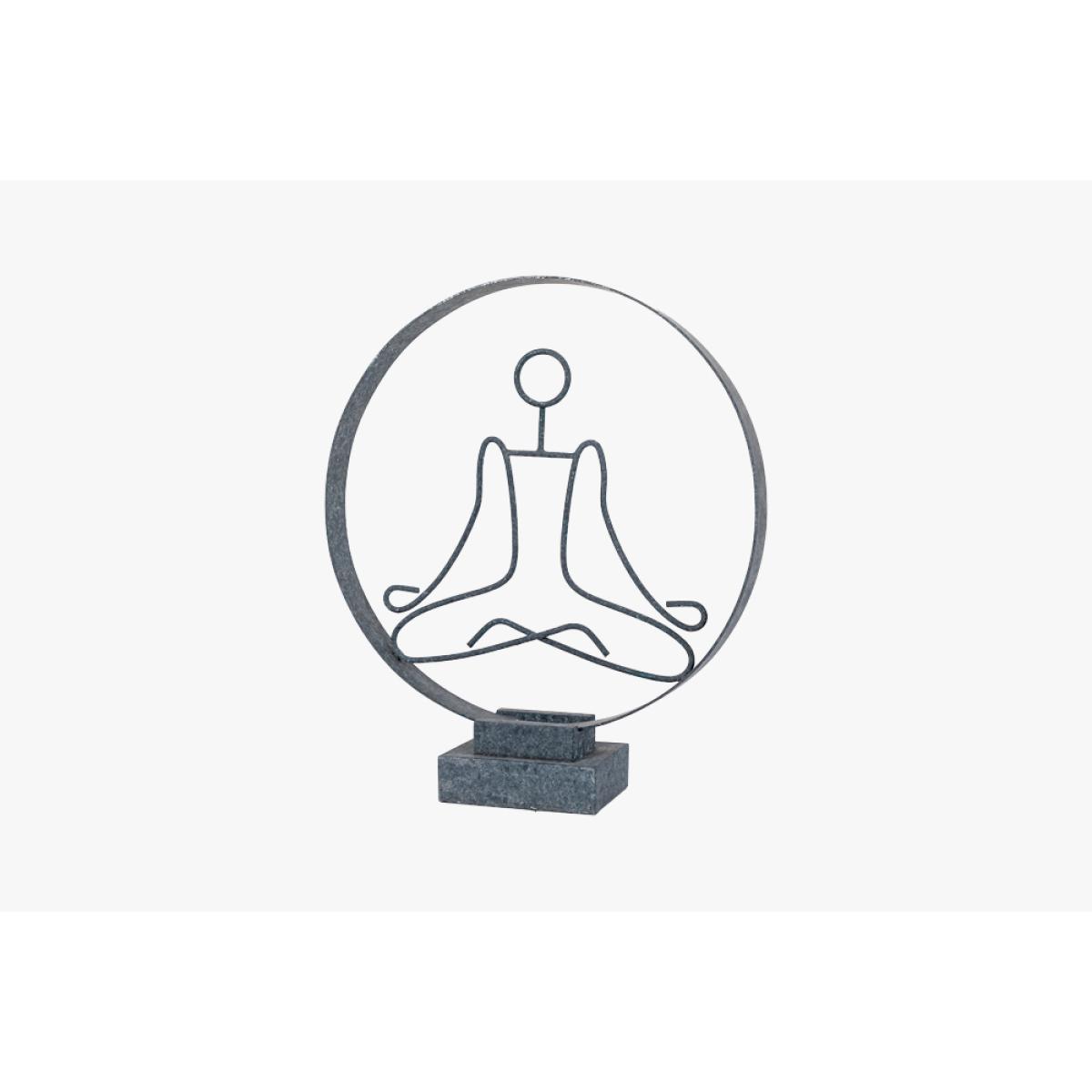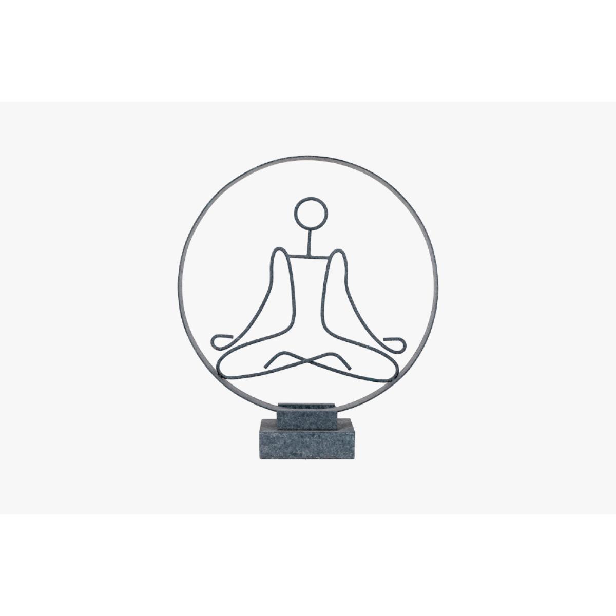 Find your inner calm and meditate on the meaning of life with the Om Lotus Pose Sculpture. With a distressed grey wire form figure in the most relaxing of yoga poses, the Lotus, you can bring a feeling of tranquillity to your home.