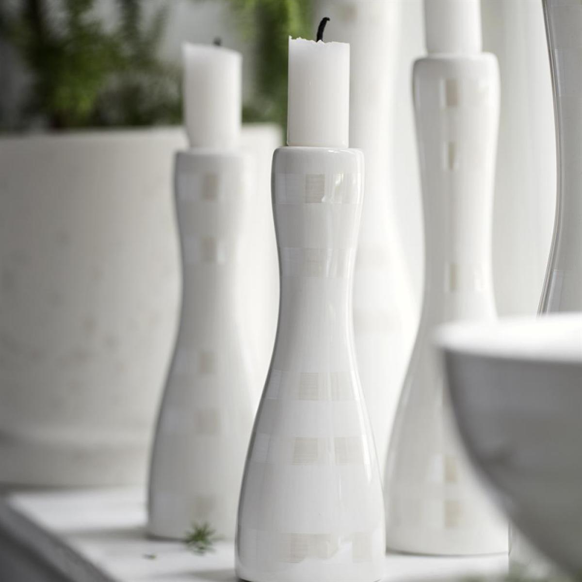 I love this candle holder for its clean, modern aesthetic with a subtle touch of texture thanks to its pearl finish. It works beautifully in minimalist, Scandi, or contemporary interiors, adding a soft elegance without overwhelming the space. To style it well, keep the surroundings simple-pair it with other neutral-toned accessories or natural materials like wood or linen for a balanced look. For practical tips, place it on a dining table, sideboard, or mantel to create a warm ambiance, especially when paired with a coordinating candle in a similar colour palette. Its versatile design makes it an easy piece to update seasonally or as part of a layered tablescape.