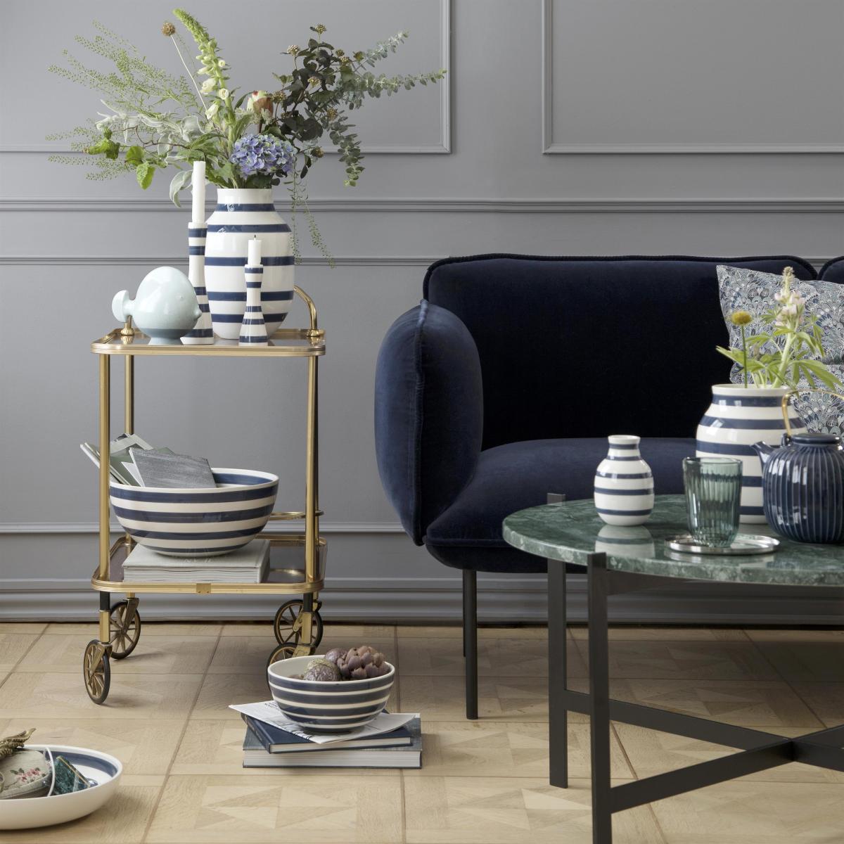 The stylish Omaggio vase by the Danish brand Kähler was designed by Ditte Reckweg and Jelena Schou Nordentoft. The iconic hallmark stripes on the vase, create a simple, yet striking design that easily finds a place in most homes.