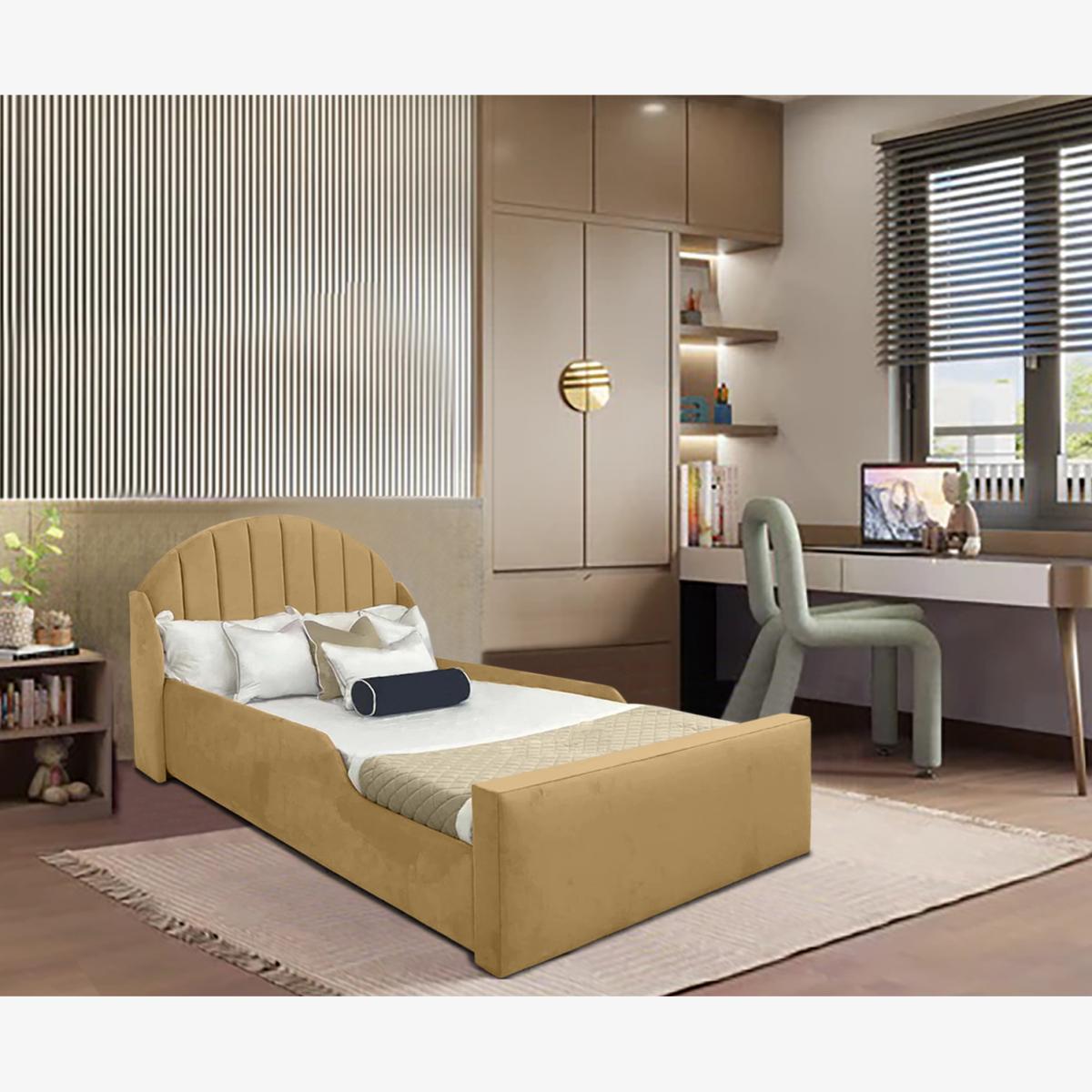 Omario Kids Bed Plush Velvet with Safety Siderails - Beige / Single