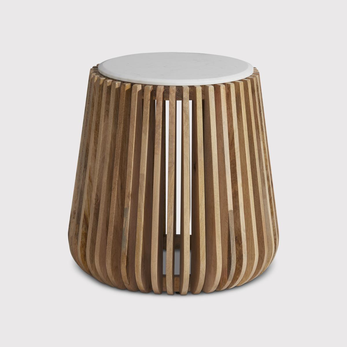 I’m a big fan of the Ombra side table for its clean lines and warm timber slats, which slot effortlessly into Scandi, coastal or pared-back contemporary schemes. The neutral finish means it plays nicely against soft greys or muted blues, while the open base keeps a room feeling airy rather than visually heavy. Stylingwise, I’d top it with a simple white vase or a small, graphic lamp to echo the round tabletop, and layer a couple of paper-back books underneath for interest. It also works brilliantly as a bedside stand, pairing easily with linen bedding and woven textiles.