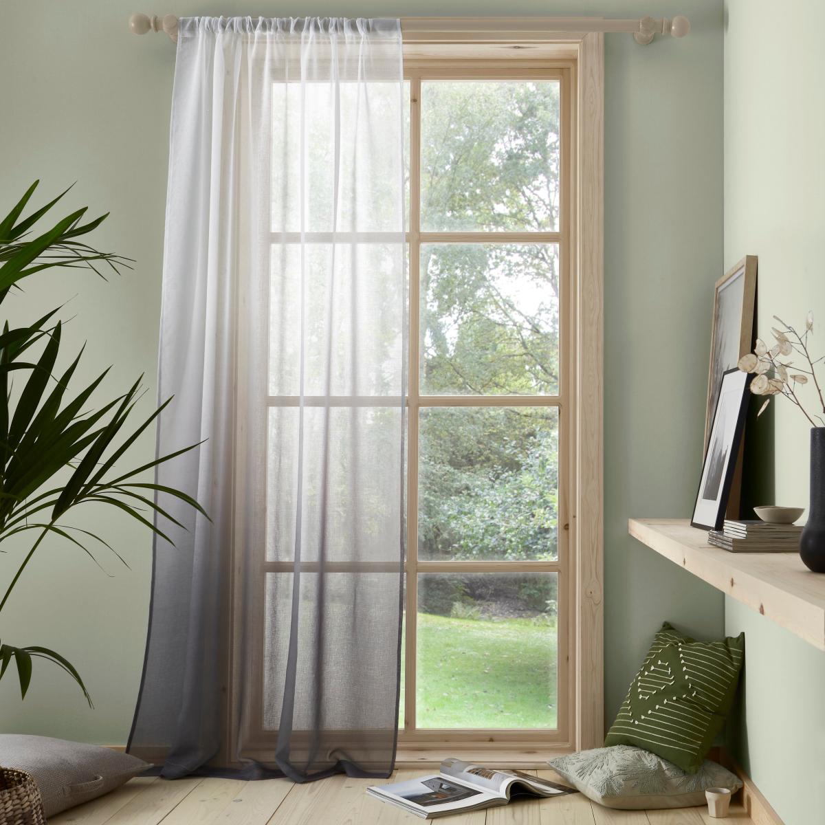 With an elegant ombre design, this contemporary voile panel diffuses white into grey for a modern look. This versatile slot top voile panel can not only be used traditionally in your windows, but also to create a separate room with room panels. This helps you improve privacy and make the most of your space. Various sizes are available, find the one best suited to your home.