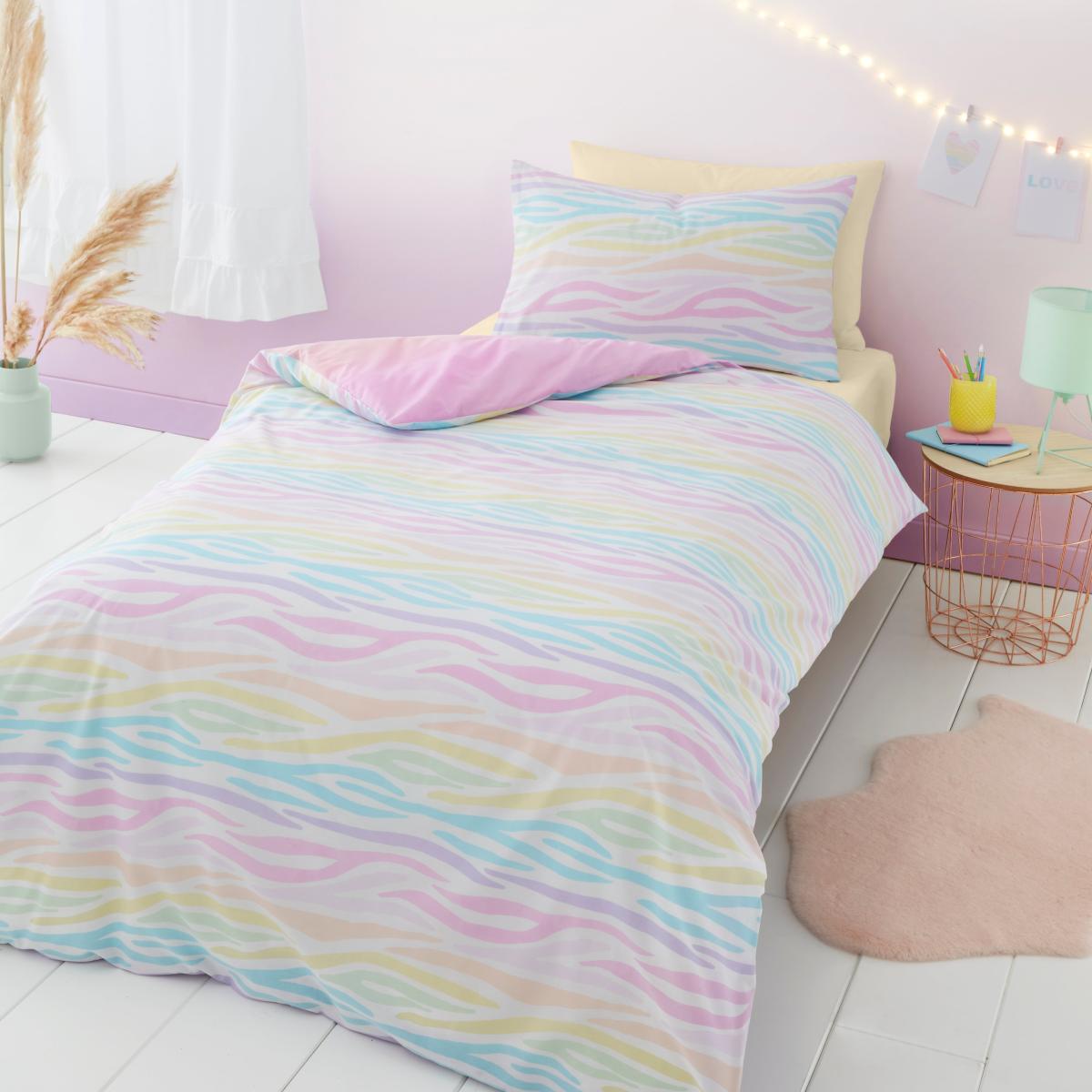 I love the ombre effect of this duvet cover set - it introduces a gentle, calming colour transition that's ideal for creating a soothing bedtime atmosphere. The multi-coloured palette makes it versatile, working well with a range of interior styles from Scandi minimalism to cosy, playful bedrooms. Practical styling tips include pairing it with solid-coloured cushions or throws to add texture without overwhelming the look, and keeping the rest of the room simple to let the duvet be the star. It's also easy to coordinate with other pastel accessories and fun decorative elements, making it perfect for a child's room that aims to feel vibrant yet balanced.