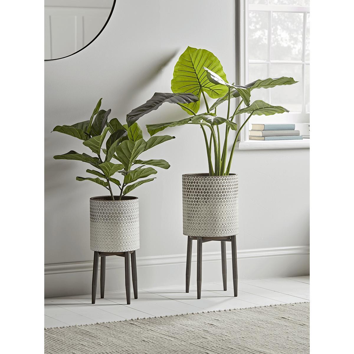#html-body [data-pb-style=DH3KNXK]. Our elegant cylindrical planters have a beautiful white wash finish and subtle embossed pattern detail. Available in a small and a large size our planters will make a real statement when displayed together - create life in a forgotten corner with a botanical feature, or position individually about the home to uplift the look of your planting.
