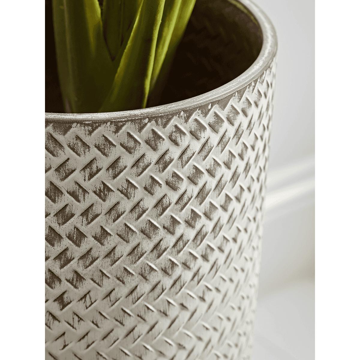 Our elegant cylindrical planters have a beautiful white wash finish and subtle embossed pattern detail. Available in a small and a large size our planters will make a real statement when displayed together - create life in a forgotten corner with a botanical feature, or position individually about the home to uplift the look of your planting.