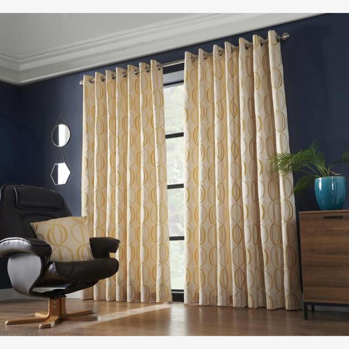 These Ome Eyelet Ring Top Curtains in a warm ochre tone are a versatile choice that can add a cosy yet sophisticated touch to many interiors. I love how the eyelet design makes for a sleek, modern finish and easy hanging, which is ideal for a contemporary or minimalist space. The ochre colour is warm but neutral enough to complement earthy tones, blush pastels, or even bold accent walls. For styling, consider pairing them with both lighter and darker textiles to create contrast, and they work well in living rooms and bedrooms alike. To enhance their colour, keep surrounding accessories simple or introduce natural textures like wooden or rattan furniture to emphasise their organic appeal.