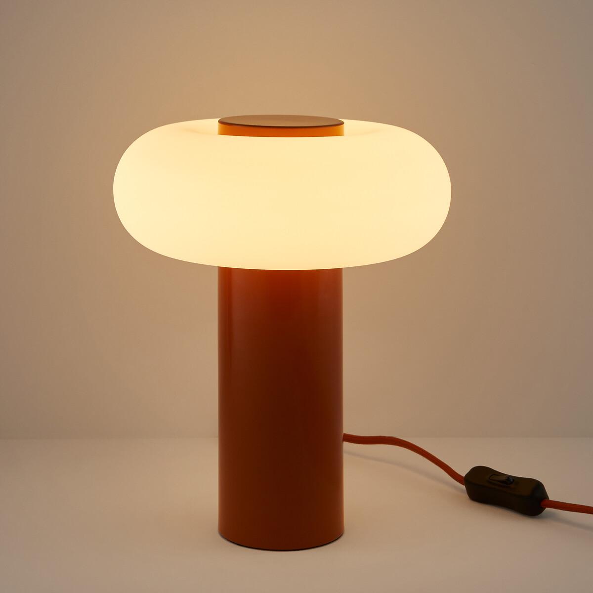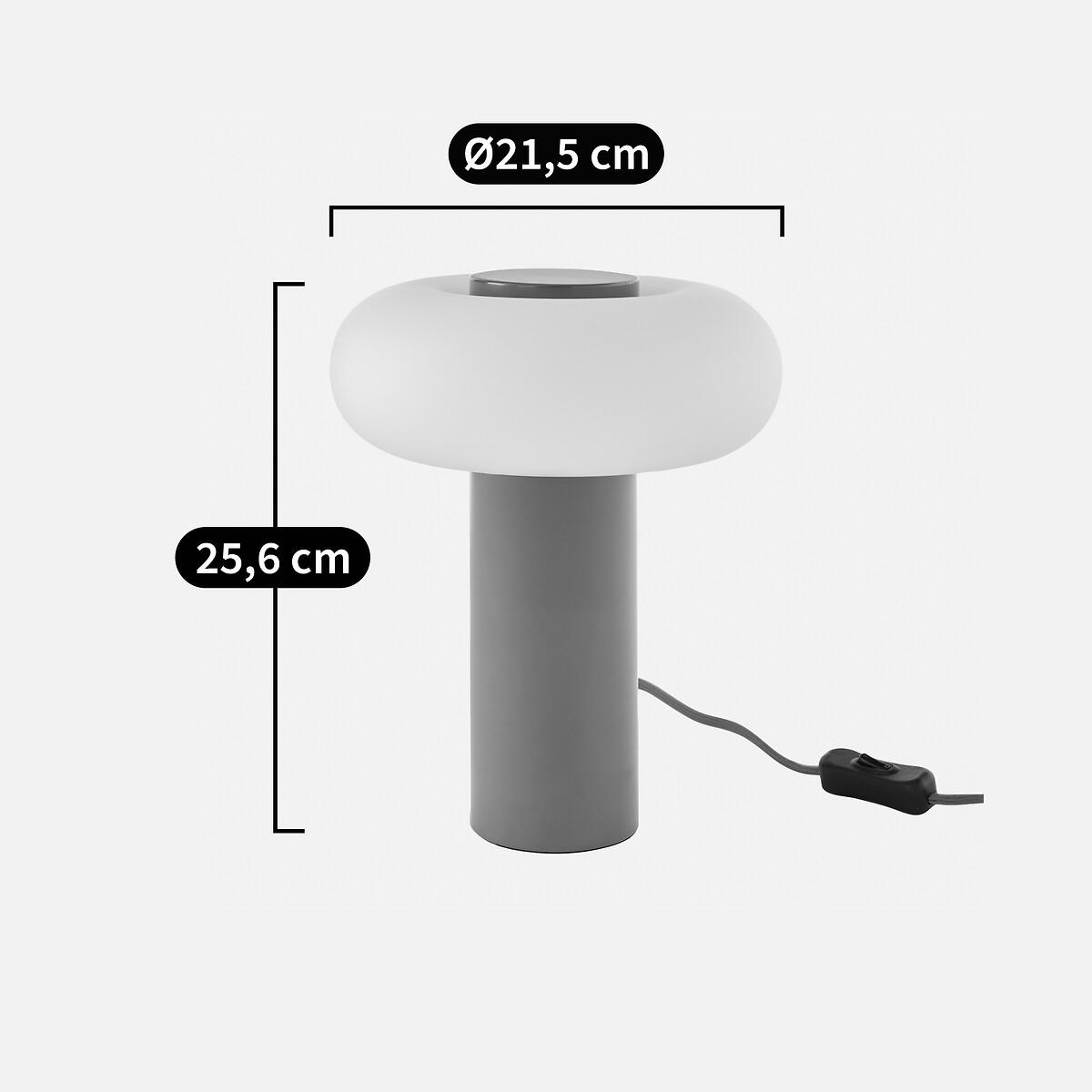 With its hyper-graphic shape, the Omer table lamp is a bold blend of materials and volumes. : base in painted metal and diffuser in opaline in a luminous ring-shaped design. A powerful piece that blends accent lighting with style. Designed by La Redoute Intérieurs. Product Details • Opaline glass shade. • Iron base covered with epoxy paint. • E14 socket for 4W max LED bulb (not supplied).Dimensions • Diameter: 21.5cm • Height: 25.6cm • Lampshade:Ø21.5 x H7.7cm • Base: Ø8 x H17.5cm Parcel Dimensions:• 1 parcel • W26 x H26 x D24.5cm, 2.58kg