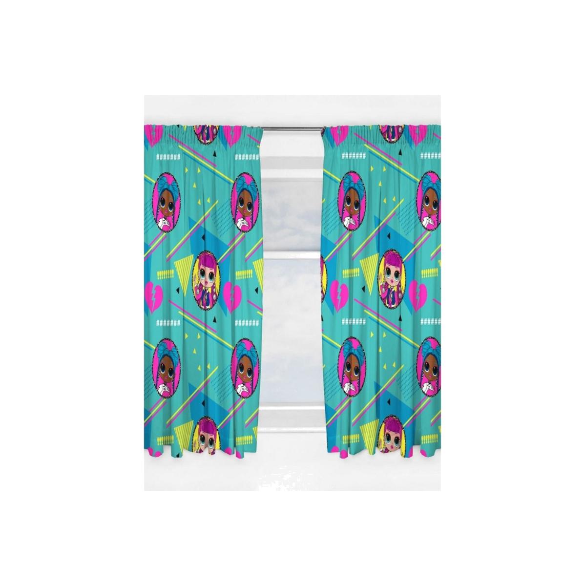 These official L.O.L. Surprise OMG Beat curtains are ideal for any fans of the popular collectable dolls. The fun design features Chillax and Roller Chick from the O.M.G Outrageous Millennial Girls big sisters range on a turquoise background with pink, yellow and blue graphic prints and patterns. These curtains are suitable for machine washing and can be tumble dried on a low setting.