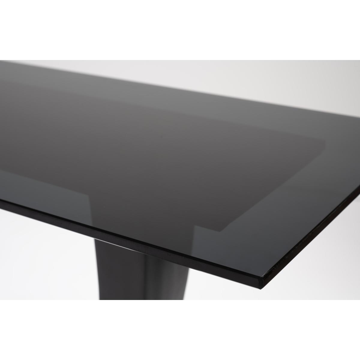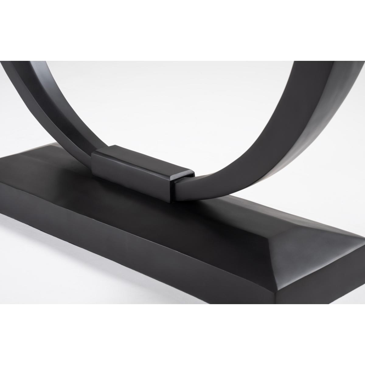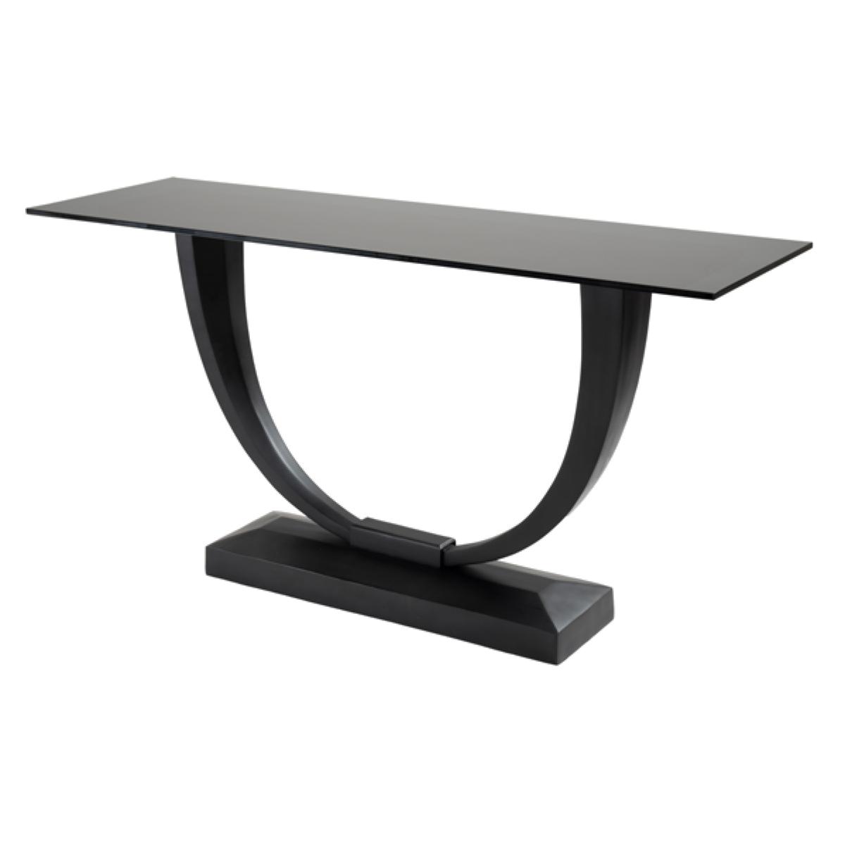 Elevate your entrance hall or dining room with this stunning console table, designed to create a striking focal point. Features a meticulously hand-crafted aluminium base with a sleek matte black powder-coated finish. Topped with a toughened, black-tinted glass surface featuring polished edges for a sophisticated look.