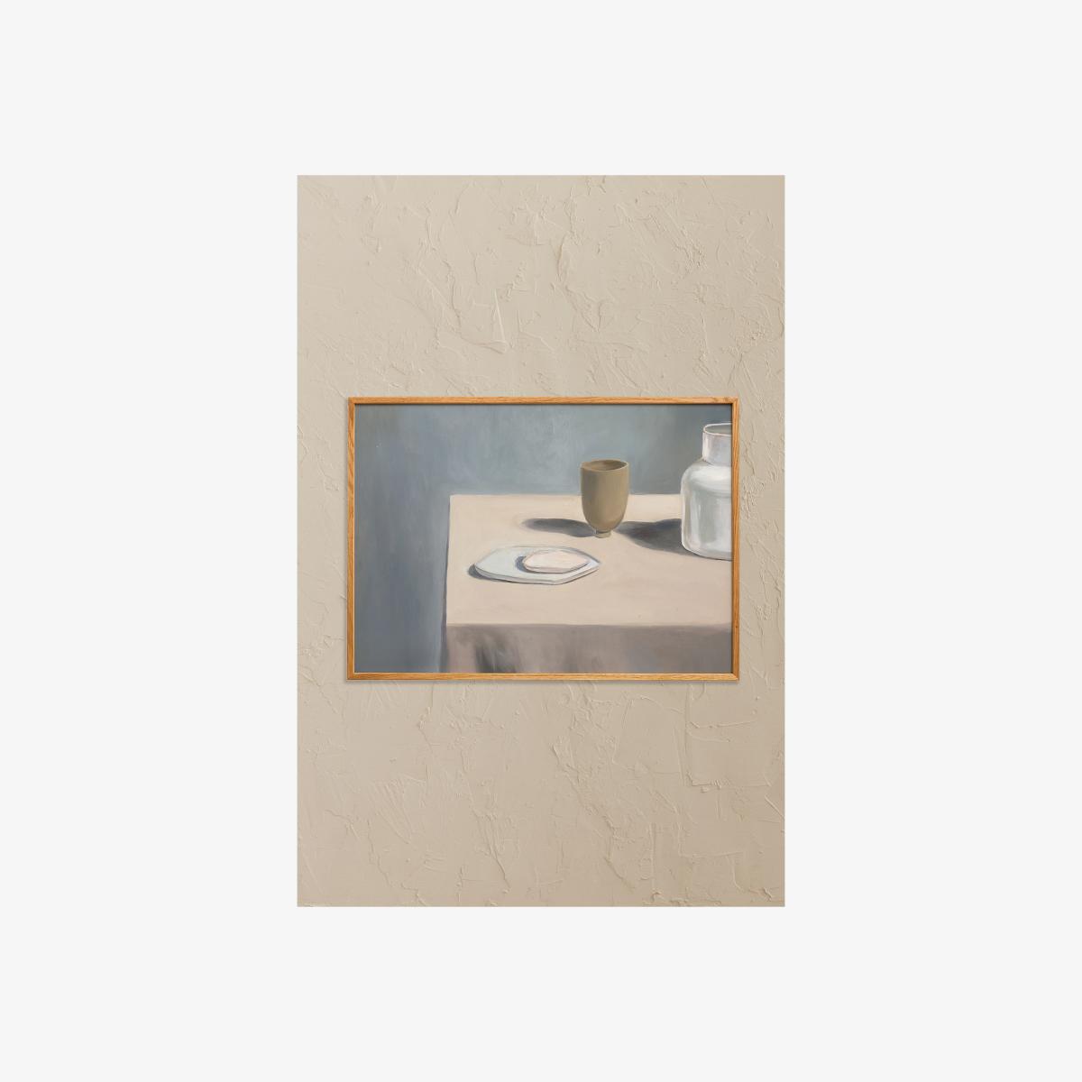 Swedish artist Jonna Valtner works with calming yet textural rich tones in this piece depicting ceramic objects atop a table. * Artwork by Jonna Valtner * Fine Art Giclée print * FSC certified, 230 g matte enhanced paper * Solid oak wood frame; Polystyrene glass * Printed in Denmark