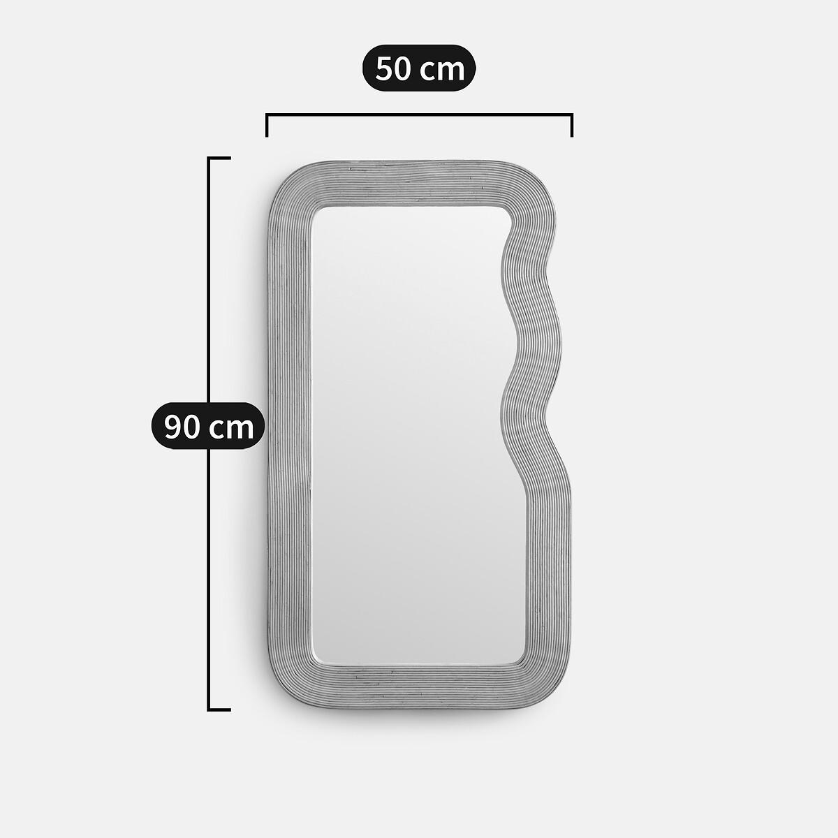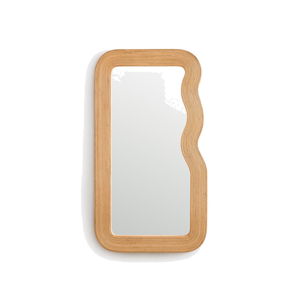 The Ondara bamboo mirror can be placed on a piece of furniture or fixed to the wall, making it the perfect addition to an entrance hall, living room or bedroom. With its deconstructed frame and wavy right-hand side, it will be the focal point of your home. Product Details • Rounded edges and wavy right-hand side • Bamboo frame • Hand-crafted, each piece is unique: colours and dimensions may vary from product to product. • Wall fixing (screws and plugs not supplied)Dimensions • Width: 50cm • Height: 90cm • Depth: 2.5cm/1" • Weight: 4.2kg. Dimensions and weight of parcel1 parcel • L97 x H8 x D58cm, 6kg