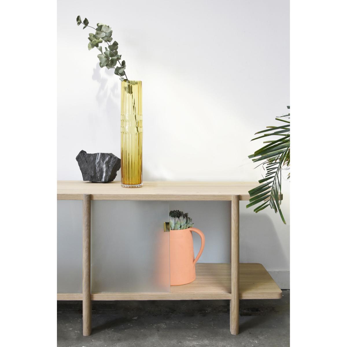 I love this big yellow vase for its bold colour and simple, elegant shape. It works particularly well in contemporary or minimal interiors, adding a warm pop of tone without overwhelming the space. Its tall, slender form makes it perfect for displaying single statement stems or small floral arrangements. A practical styling tip is to keep the arrangement sparse, letting the vase's colour and shape do the talking, and place it on a sideboard or mantle to create an eye-catching focal point. Its height also makes it ideal for filling empty corners or plus-ones in open-plan living areas, giving a fresh, modern edge to your decor.