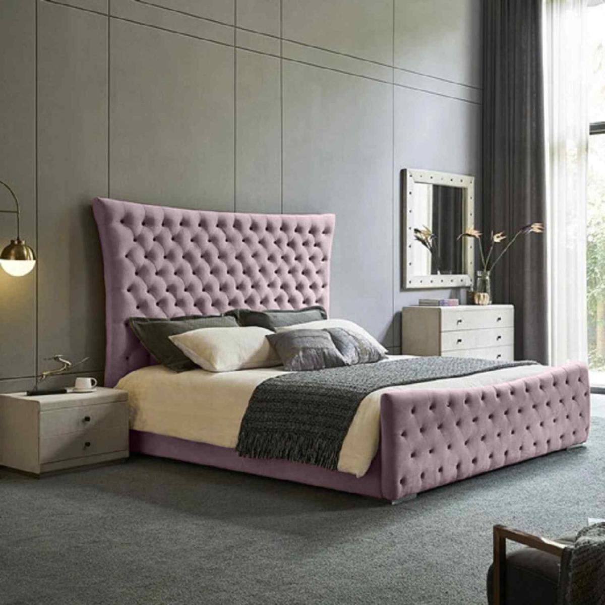 Ondrea Upholstered Plush Velvet Bed Frame - Pink / King Size