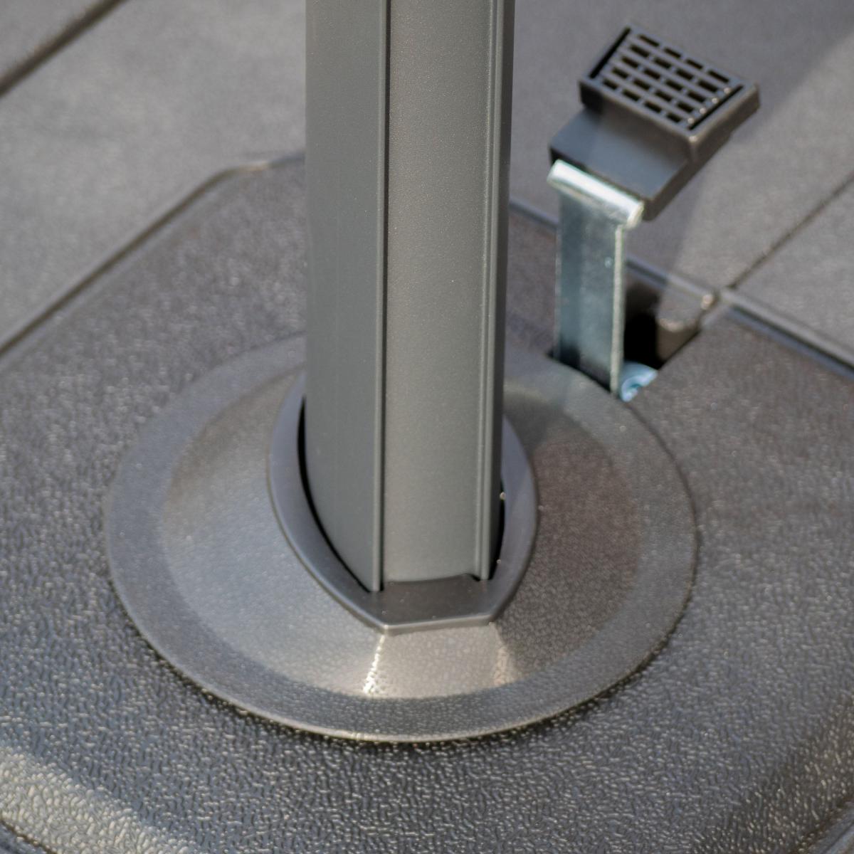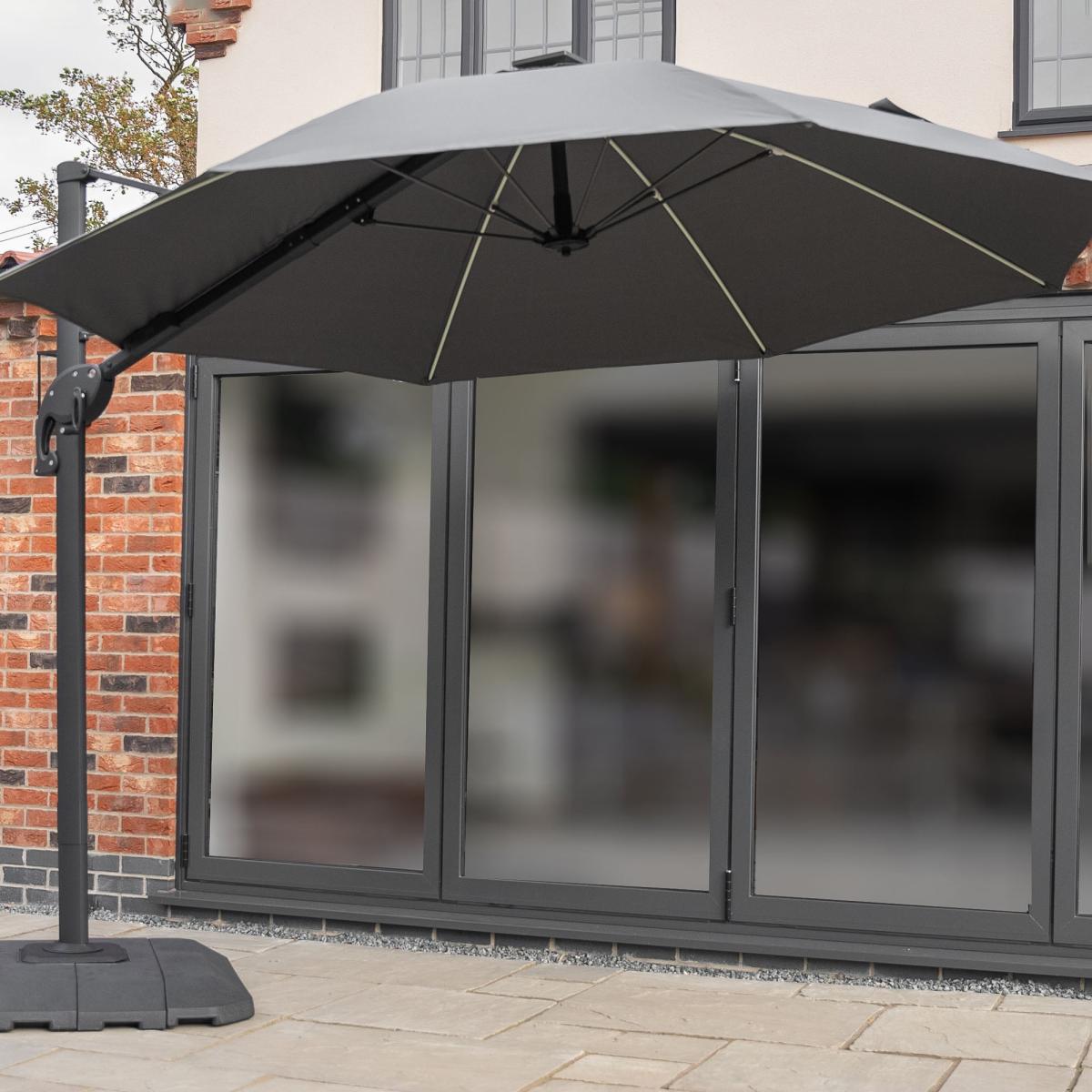 Shade off your favourite spot to read your books or eat a meal with your family. Featuring an easy action raise and lower handle with 360 degree rotation using the in-built foot pedal, you'll be able to adjust the shade to your liking in no time. And, with solar-powered LED lights, this parasol is perfect for creating an inviting ambience long after the sun goes down. Crafted from an aluminium frame and 180G. M polyester canopy, this parasol is both sturdy and stylish. Thanks to its cantilever and base design, it's also incredibly convenient - everything you need in one box. With a 3m coverage, this parasol has got you covered all day long. With its sectional water base, filling it up is a breeze, and you'll be relaxing in style in no time.