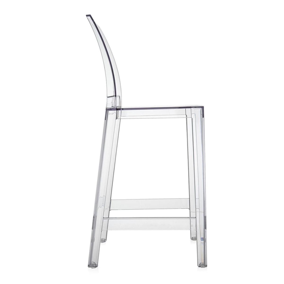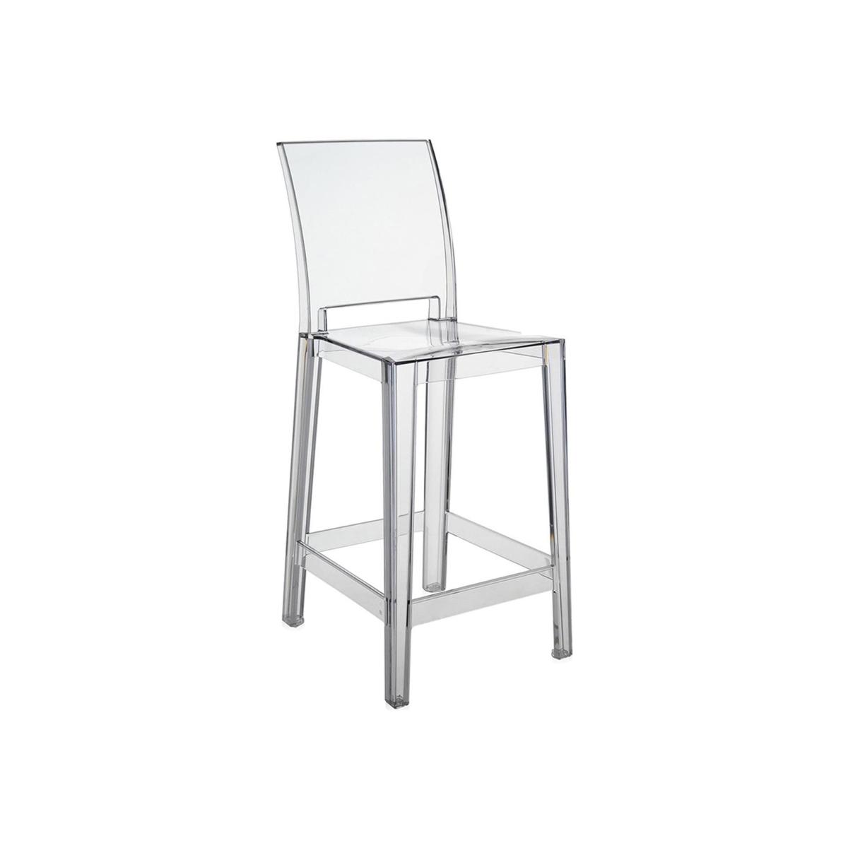 Bring contemporary style to everyday living with this stunning One More Please stool from Kartell. With gorgeous elongated legs and a sturdy square back for ultimate comfort, this chair is the perfect home accessory. Designed by Philippe Starck and made from durable polycarbonate, suitable for both indoor and outdoor use, this stool is ideal for relaxing in the garden and in the kitchen. The chic finish adds a touch of elegance to any interior setting, and you can match with more seating available from Kartell to transform your living space.