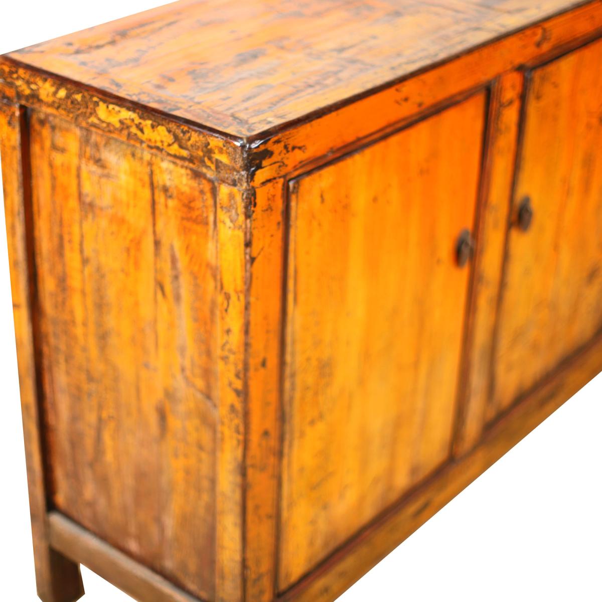 The Antique Painted Pine 3 Door Orange Sideboard boasts a captivating glossy finish that brings a touch of elegance to any space. Crafted from pine wood, it showcases a striking distressed orange hue that makes a bold style statement. This versatile piece compliments both traditional and contemporary interiors, making it a great addition to any room. Inside, you'll find three roomy cupboards with shelves, offering ample storage options. With its lasting appeal, this stunning sideboard promises years of enjoyment.