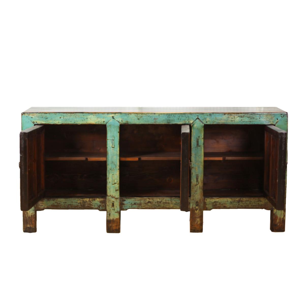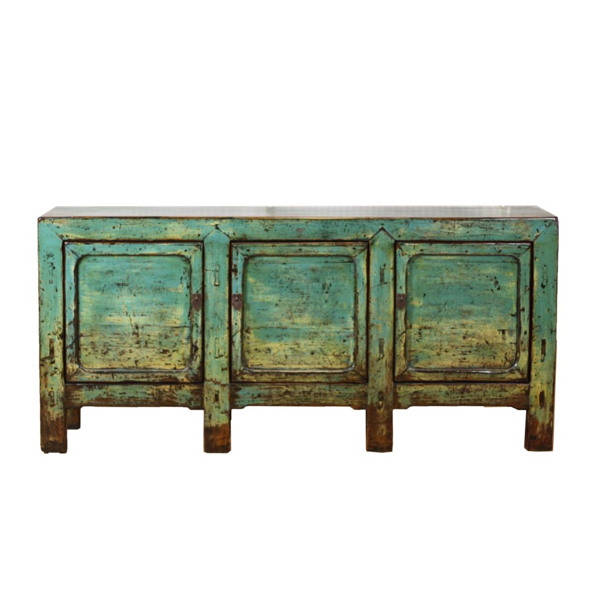 A piece like no other, the Song Antique Painted Pine 3 Door Teal Sideboard is ready to add a splash of colour and unique design into your home. Hand crafted using reclaimed pine, displaying all its natural graining and finished with a bold teal shade and clear lacquer; combining tradition with modernity in a way that just works. The Song Antique Painted Pine 3 Door Teal Sideboard has plenty of space inside to keep your possessions neatly stored away.