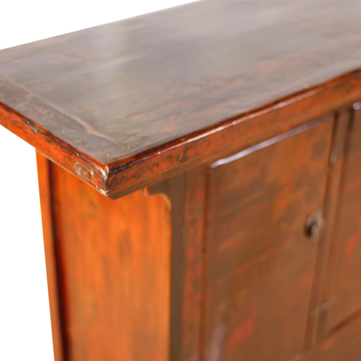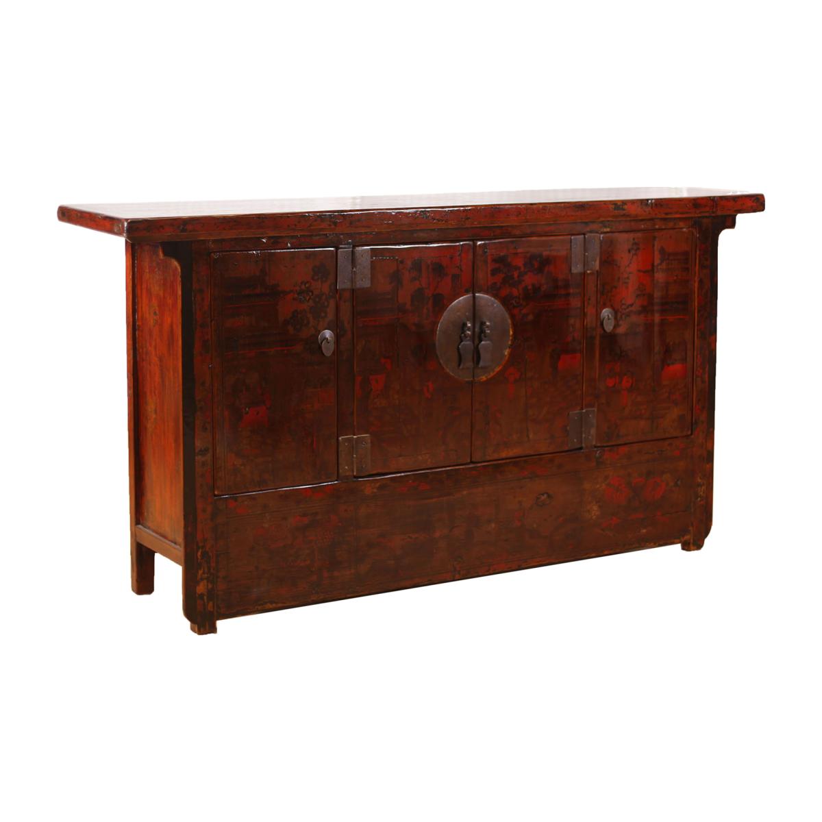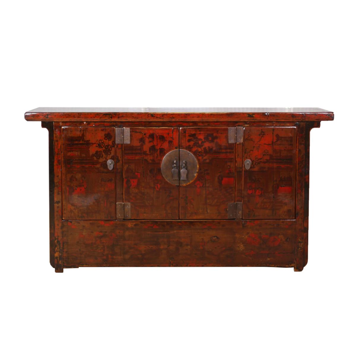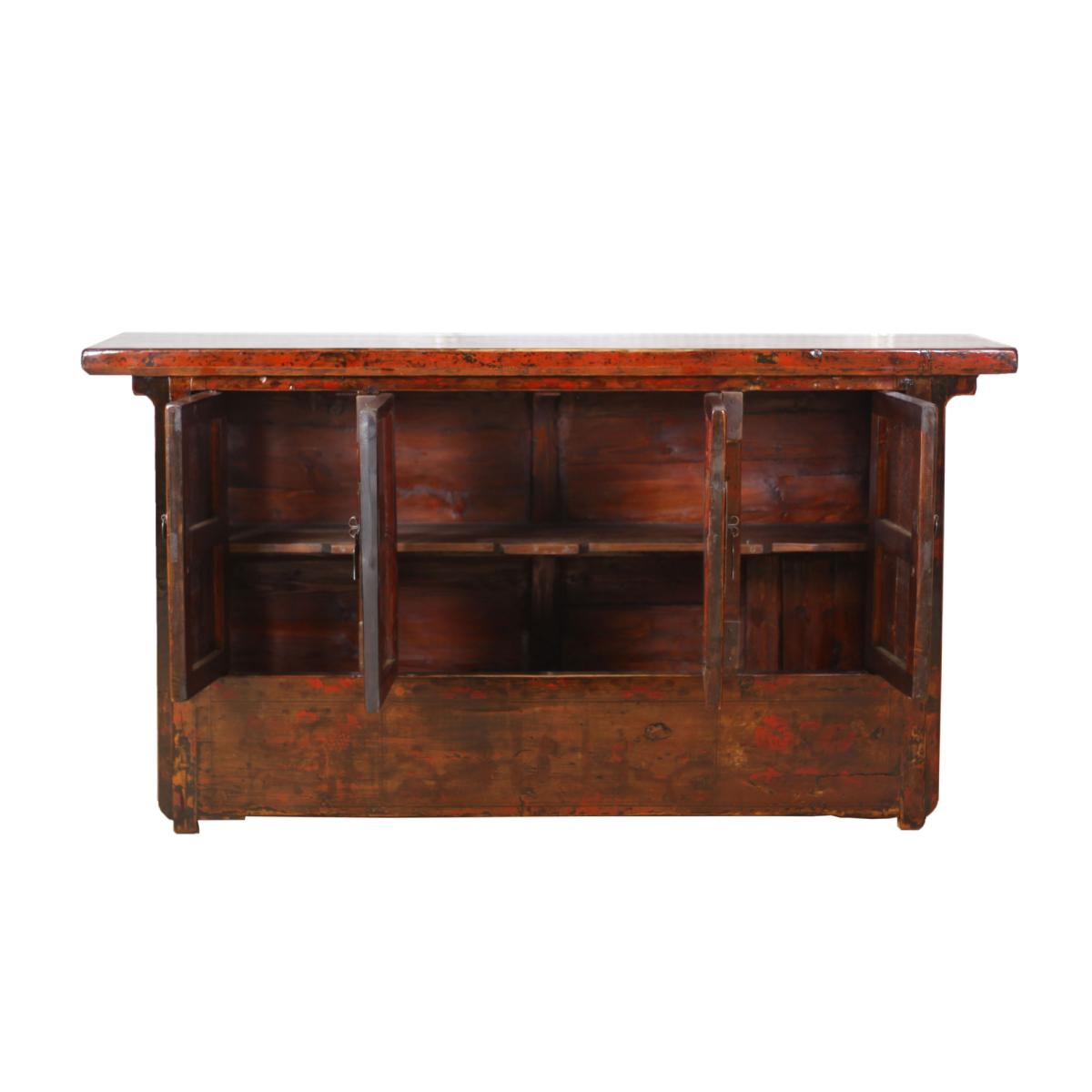 Enhance your dining area or hallway with the Song Antique Painted Pine 4 Door Brown Sideboard. Displaying metal hinges and stylish handles with different shapes, the Song Antique Painted Pine 4 Door Brown Sideboard has a unique oriental design that will bring class and character to your home. Open up the four doors to display a fantastic amount of storage space to ensure your rooms are free from clutter.