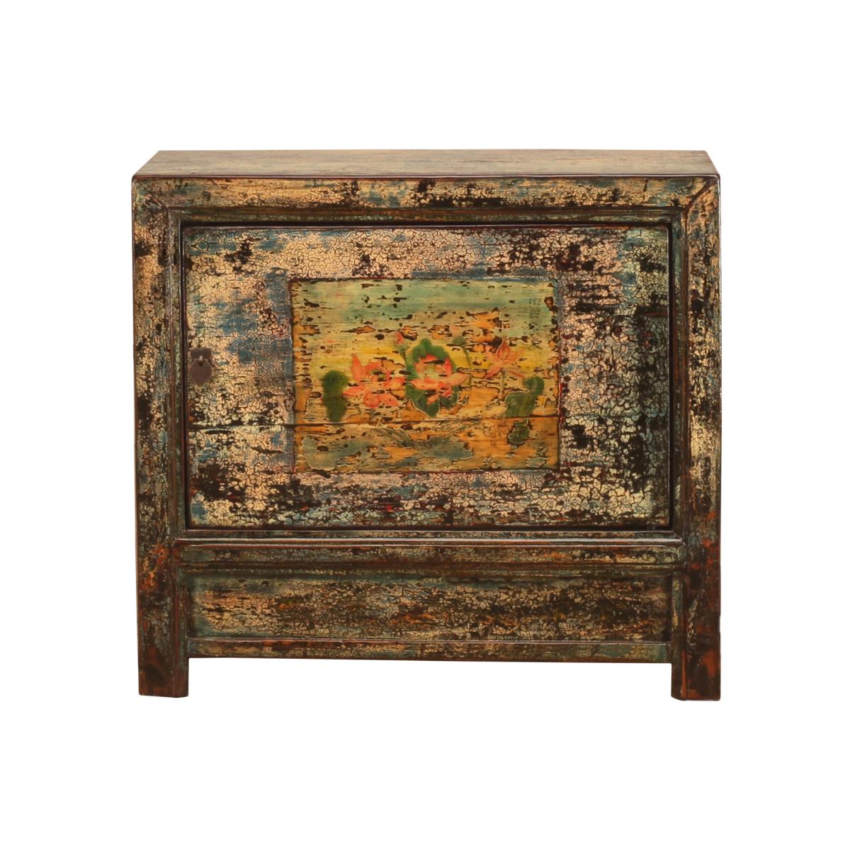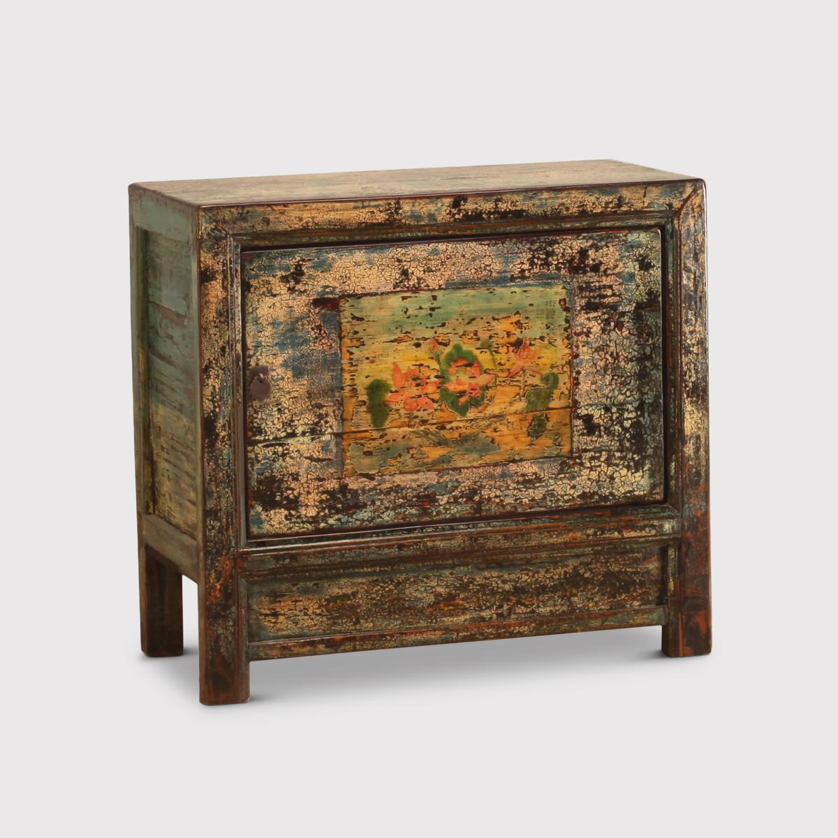 The Song Cabinet with 1 Door looks like it has been stowed away at the back of a special antique store, and luckily for you this treasure is available here. The speckled paint work atop the quality pine wood is quite a sight to behold, with gorgeous colour variation and a floral pattern which seeps through the rustic design. Whilst small and compact in size, the 1 Door Song Cabinet is large in personality, the perfect addition to your dining or living space to store away magazines and books.