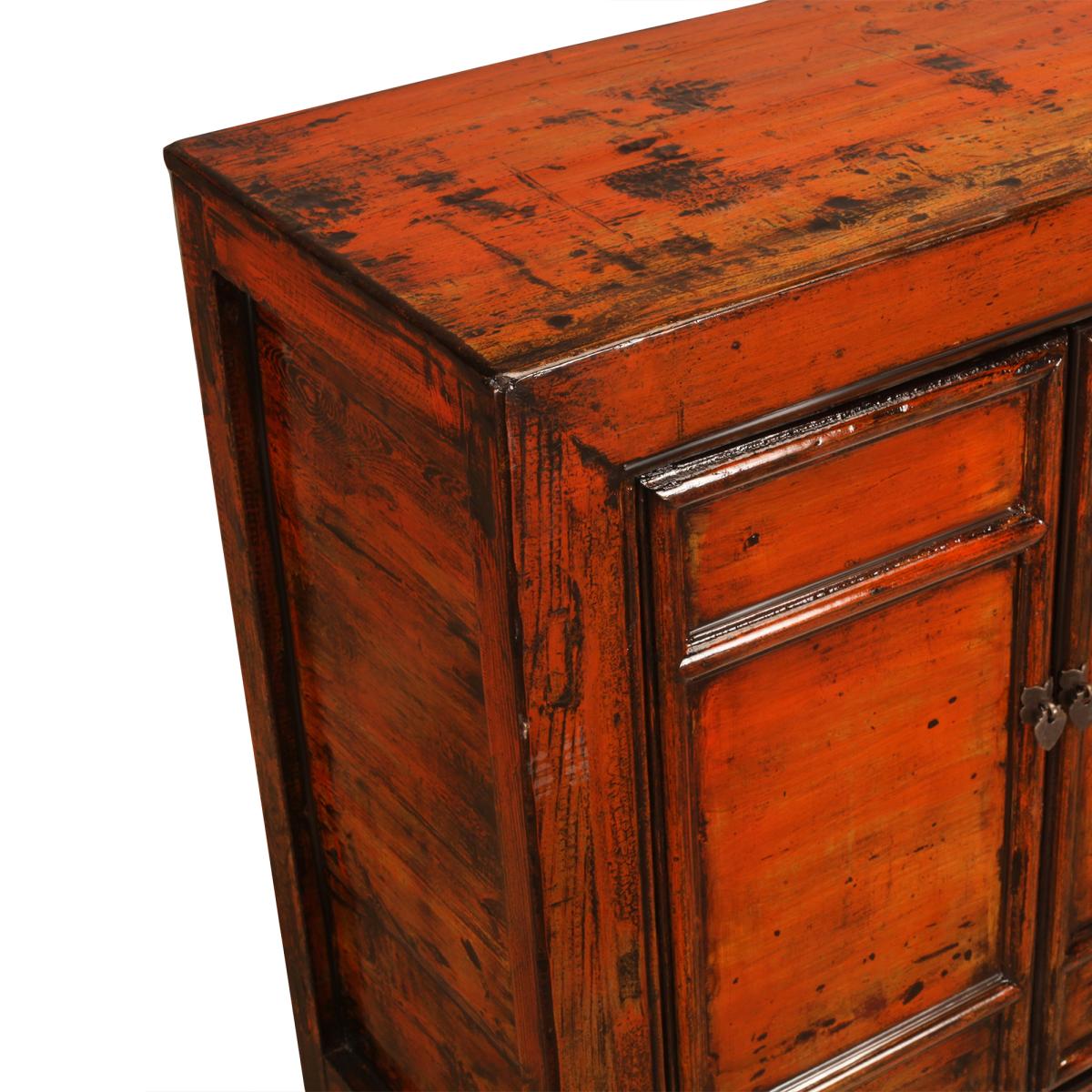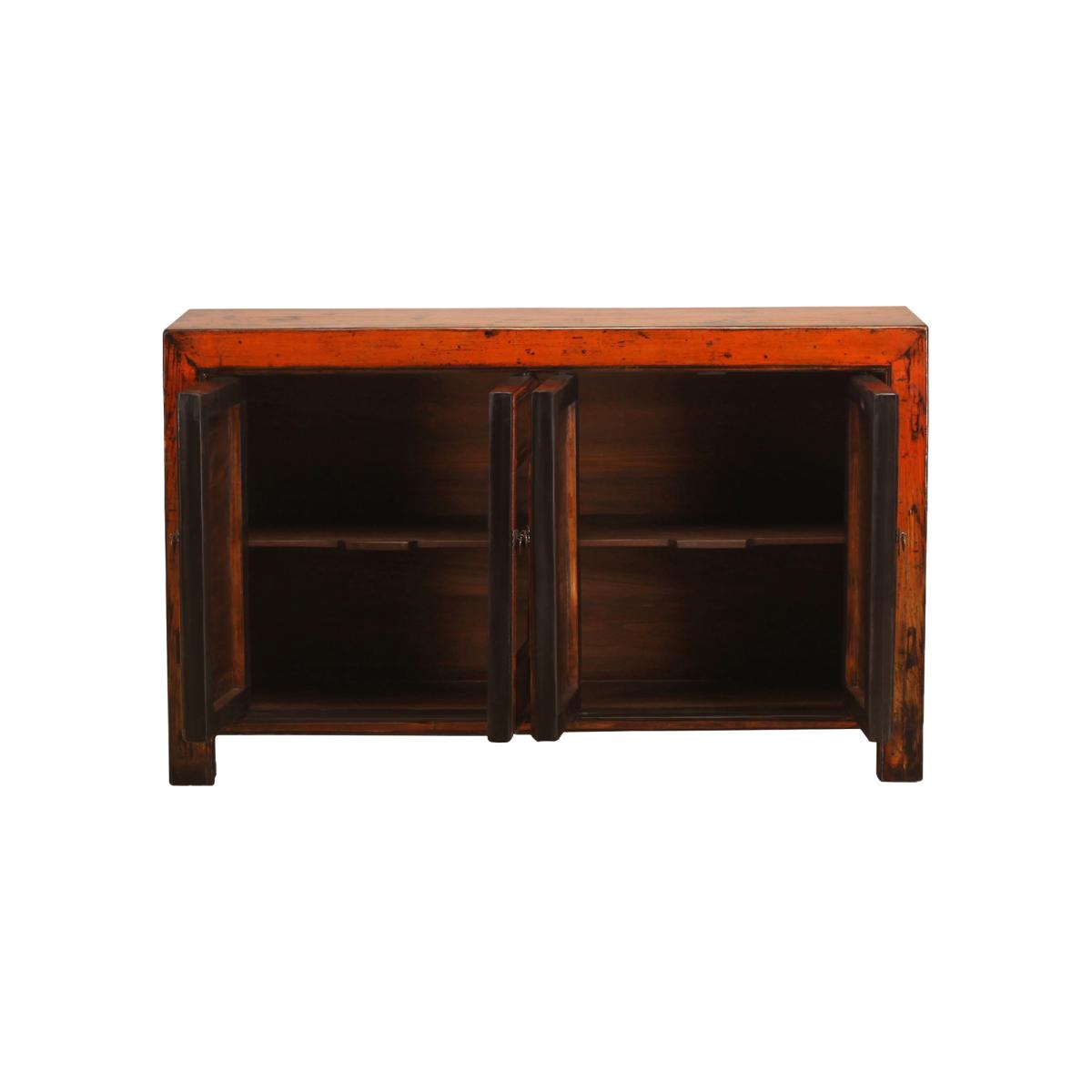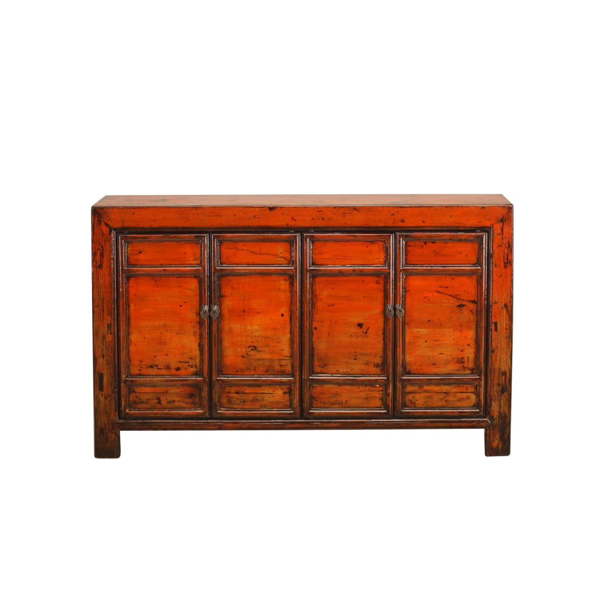 If you are looking to add something original and eye-catching to your home, the Song Cabinet with 4 Doors is exactly the piece. The bold orange paint, surrounded by natural splits and distressed patches, is a bold statement to infuse into your dining area, setting the tone for adding other unique items. With plenty of storage space and the area on top to display accessories and more, the Song Cabinet with 4 Doors is a functional and characterful choice that will never go out of style.
