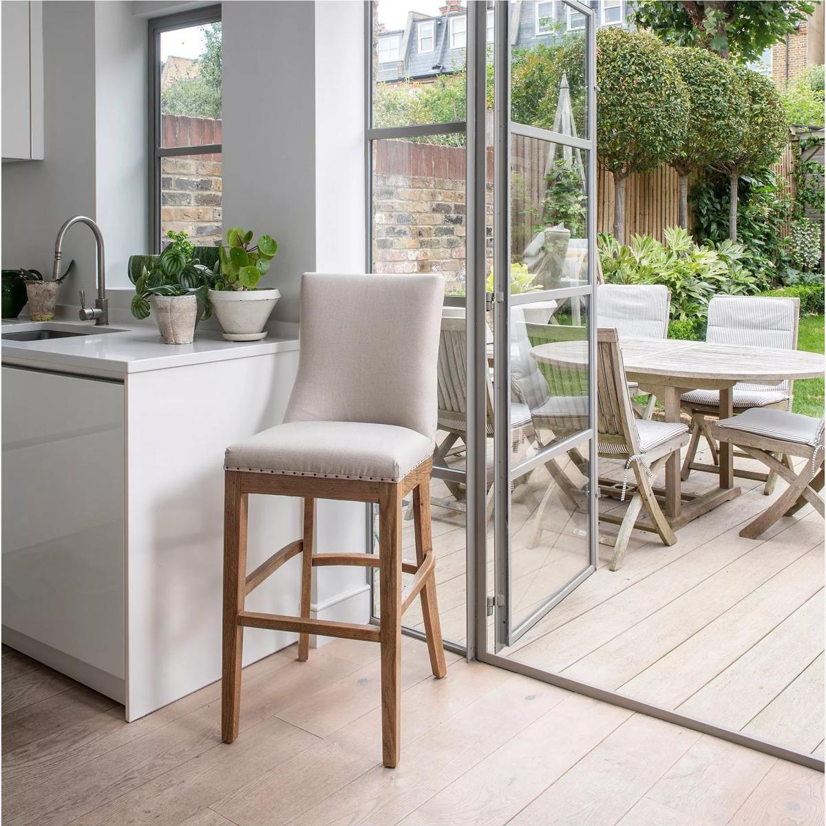 I love this stool for its clean, versatile look that easily elevates any breakfast bar or kitchen island. The beige seat combined with the oak legs creates a relaxed yet stylish aesthetic, making it suitable for contemporary and Scandinavian-inspired interiors. It works well in open-plan kitchens, family kitchens, or even casual dining areas where comfort and function are key. For styling tips, consider pairing it with minimalist colour schemes or earthy tones to emphasise its natural materials. Adding cushions or throws can also boost comfort and introduce a splash of colour or texture. Overall, it's a practical, easy-to-maintain choice that can adapt to various interior styles while adding a touch of understated elegance.