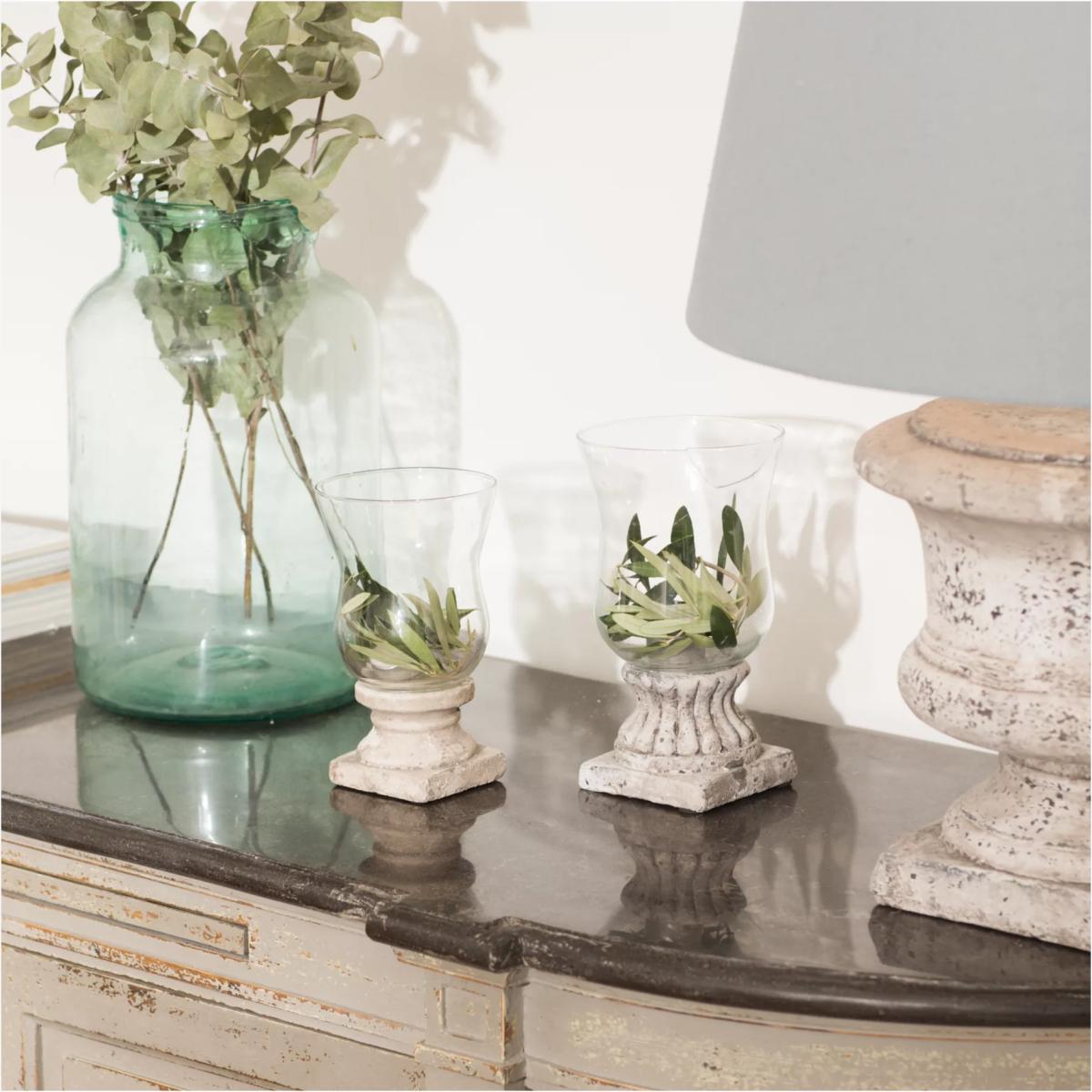 The simplistic beauty of this glass and stone hurricane lamp is evident in spades. Pop in a candle or twisted LED lights and just sit back and admire just how gorgeous it is.