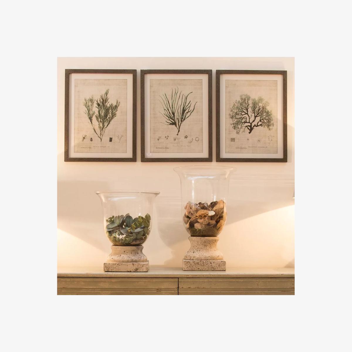 Finish any nature-themed space with this set of 3 botanical prints. Glazed and presented in wooden frames.