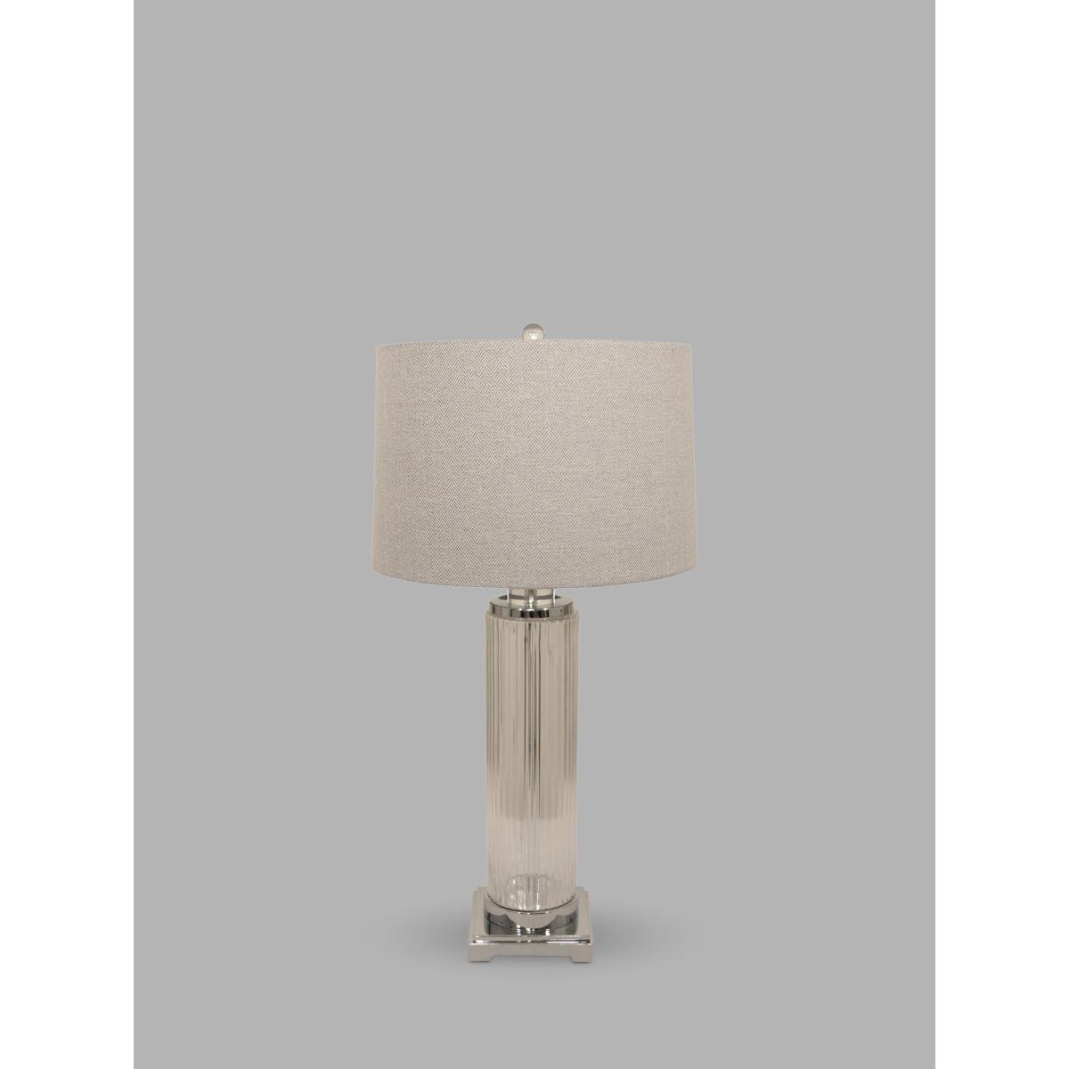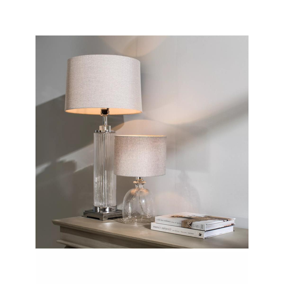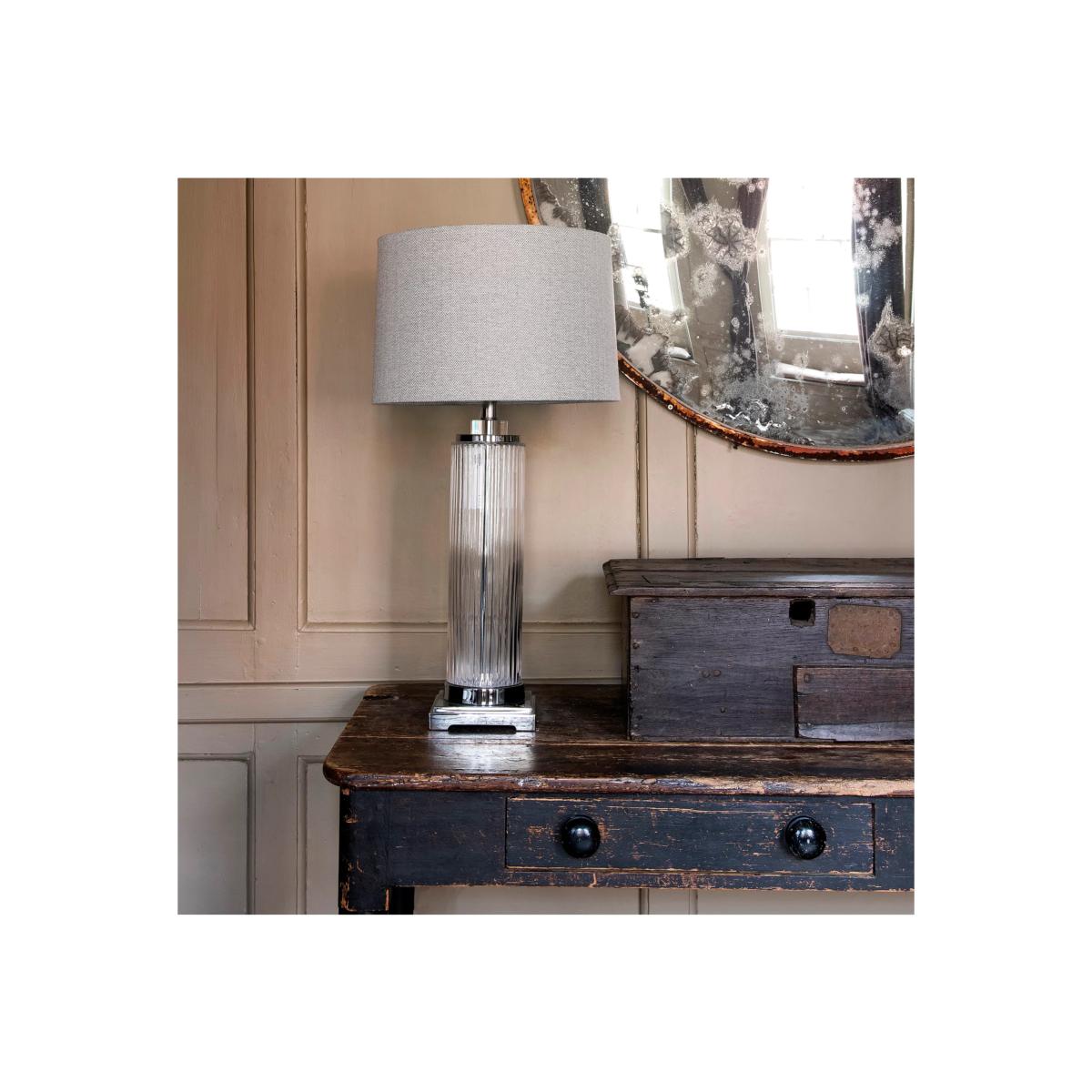Bursting with art-deco inspired style, this stunning Clifton cylinder lamp has a distinctive ribbed glass base that adds dimension and character. Paired with a neutral shade and polished base, this is a sophisticated and stylish addition to your home.