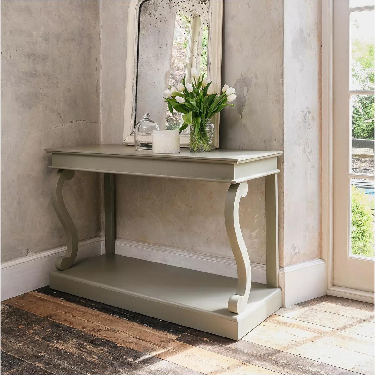 Upgrade your living space with this chic and practical console table. With its soft grey finish, it exudes a contemporary yet timeless charm making it the perfect addition to your home.