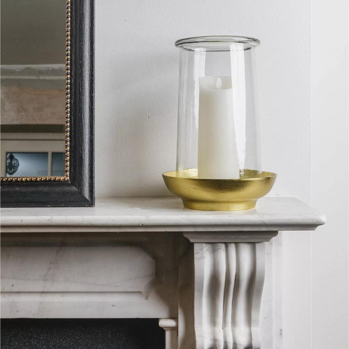 I love this hurricane lantern for its understated elegance and versatility. Its clear and gold finish makes it a chic addition that can elevate both classic and contemporary interiors. It works particularly well in cosy living rooms, on mantelpieces, or as centrepieces on dining tables, especially when paired with pillar candles for a warm, ambient glow. Styling tip: place it alongside other metallic accents or natural textures to create a layered, curated look. Its transparent design allows the candlelight to shine through beautifully, making it an eye-catching yet unobtrusive decorative element in any space.