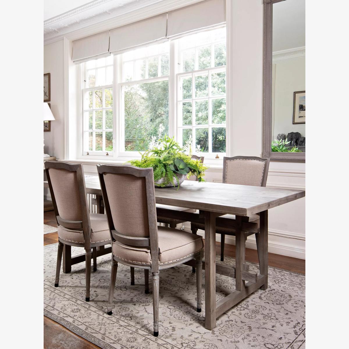 I love this table for its versatile, natural look and sustainable appeal, making it an ideal centrepiece for both country-style and modern interiors. Its recycled pine construction offers warmth and character, enhancing a cosy, inviting dining space. It works well with a range of chair styles-from upholstered classics to minimalist woodland-inspired designs-allowing flexibility in styling approaches. Practical tips include balancing the natural tones with soft textiles or colourful accessories to prevent it from feeling too rustic, while the sturdy build makes it suitable for everyday family use or more formal occasions. It’s a practical, stylish solution for creating a welcoming dining environment that celebrates sustainability without sacrificing design.