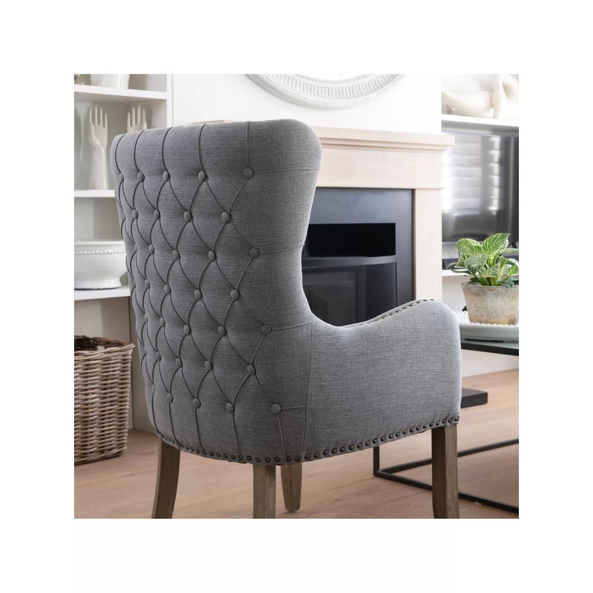 I really like this armchair because of its versatile style and neutral grey tone, making it easy to incorporate into a variety of interiors, from modern to traditional. Its classic shape and understated elegance make it a great choice as an accent piece to add character to a living room or reading nook. For styling, consider pairing it with textured cushions or a cozy throw to soften its look and add comfort. It also works well when placed near statement lighting or a side table, creating a inviting spot for relaxation or conversation. The timeless design and muted shade mean it can be updated with accessories or colours that suit your evolving decor scheme.