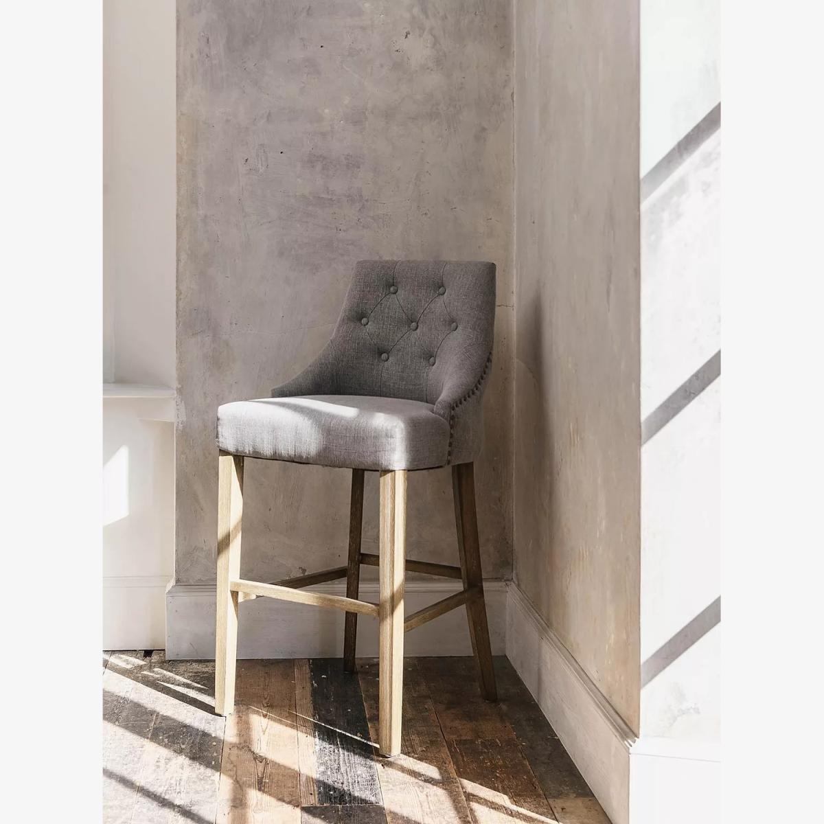 I really like the St James bar stool for its sleek, minimalist design and versatile grey upholstery, which makes it easy to incorporate into various interiors. It works particularly well in contemporary, urban, or Scandinavian-style kitchens and bars due to its understated elegance. Practical styling tips include pairing it with a marble or wooden countertop for contrast, or using it to soften a more industrial space. Its neutral tone also allows it to blend seamlessly with other colour schemes, and the comfortable button-tufted backrest adds a touch of refinement without compromising function. Overall, it’s a smart choice for creating a stylish yet practical bar area.