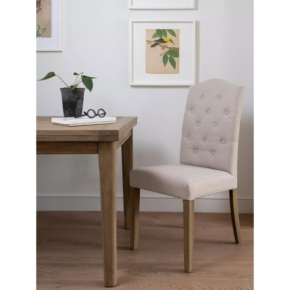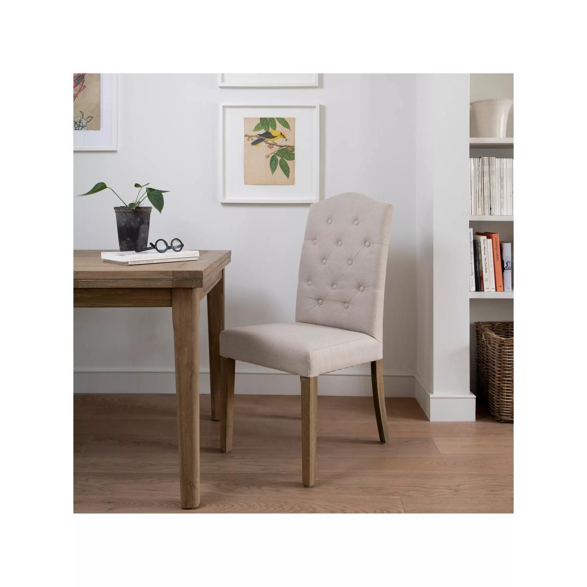 This St James dining chair from One. World has all the styling you need for a timeless look. Soft cushioning, button-backed upholstery and oak wood legs make this chair comfortably classic. Want to see it first? You may want to see and get a feel for the furniture in one of our shops before ordering. We'll be able to tell you where the range you'd like to view is on display.