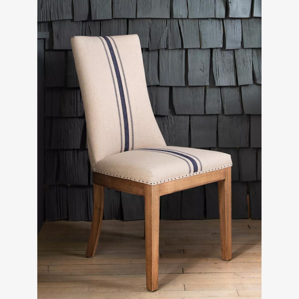 One.World St James Oak Wood Striped Linen Dining Chair, Beige/Blue