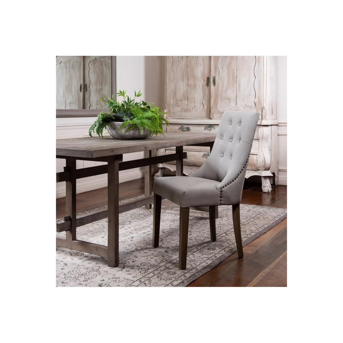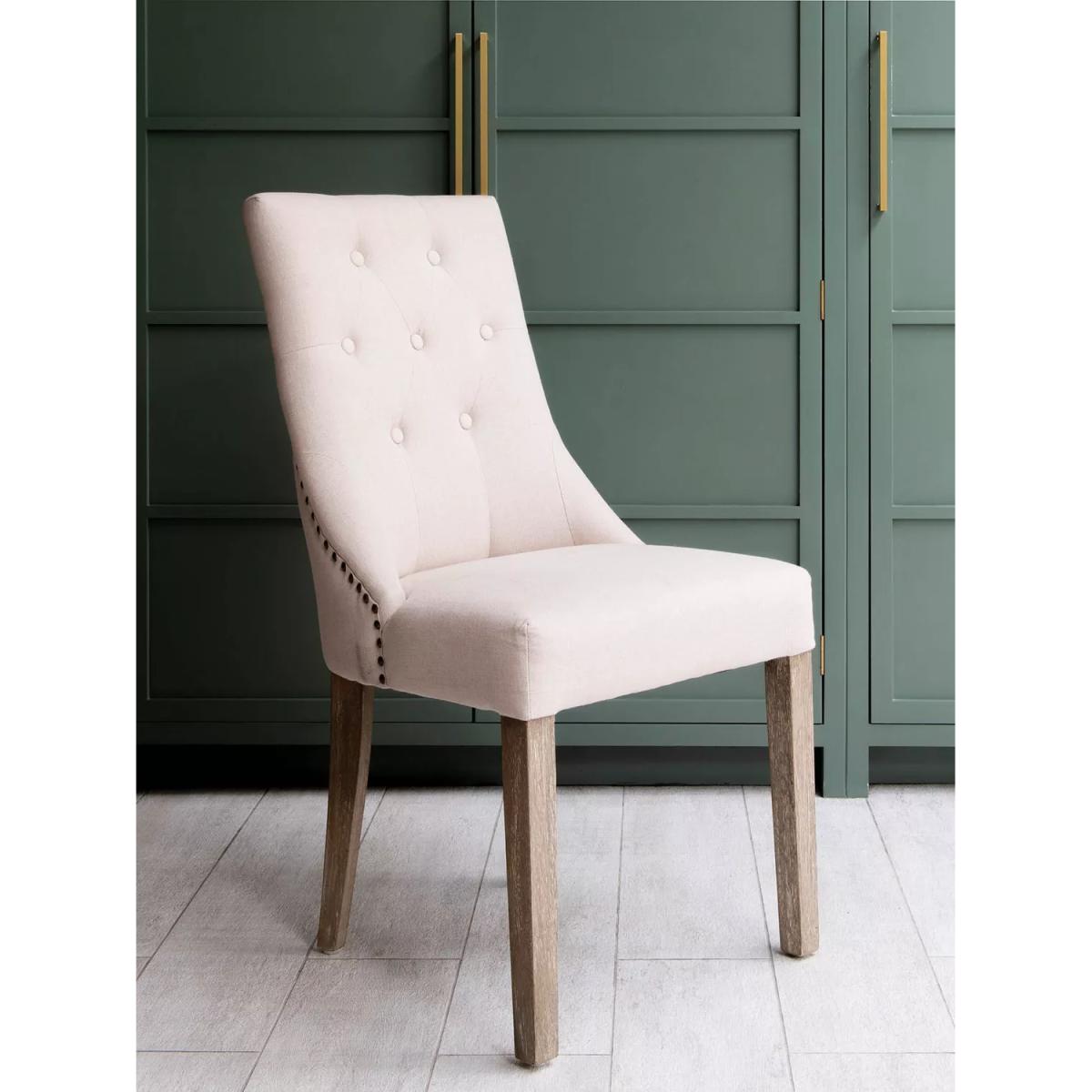 I’m a big fan of the St James chair for its clean lines and oak-framed studs - it brings a subtle nod to traditional detailing without feeling fussy. The soft, neutral upholstery makes it a versatile choice in modern farmhouse, Scandi or transitional schemes, and the solid timber legs give it a reassuringly sturdy feel around a large dining table. For styling, keep the palette calm - think muted linens, a low-pile jute or flat-woven rug and simple crockery in off-whites or soft greys. If you’re after a touch of contrast, add a single accent cushion in a natural leather or deep charcoal, and pair it with a reclaimed-wood table to let the chair’s detailing really stand out.