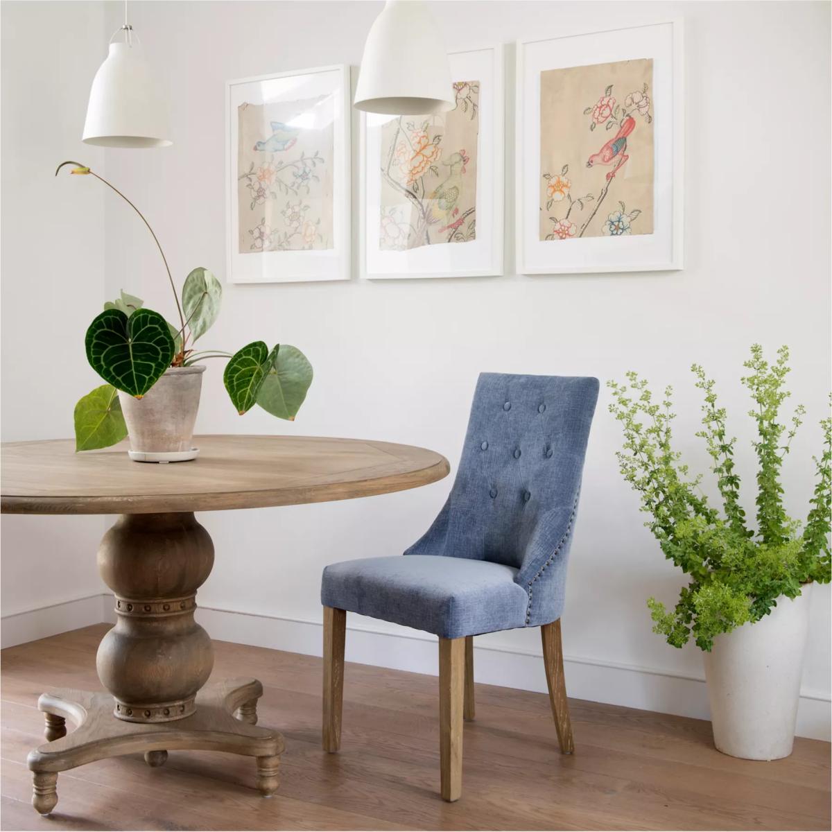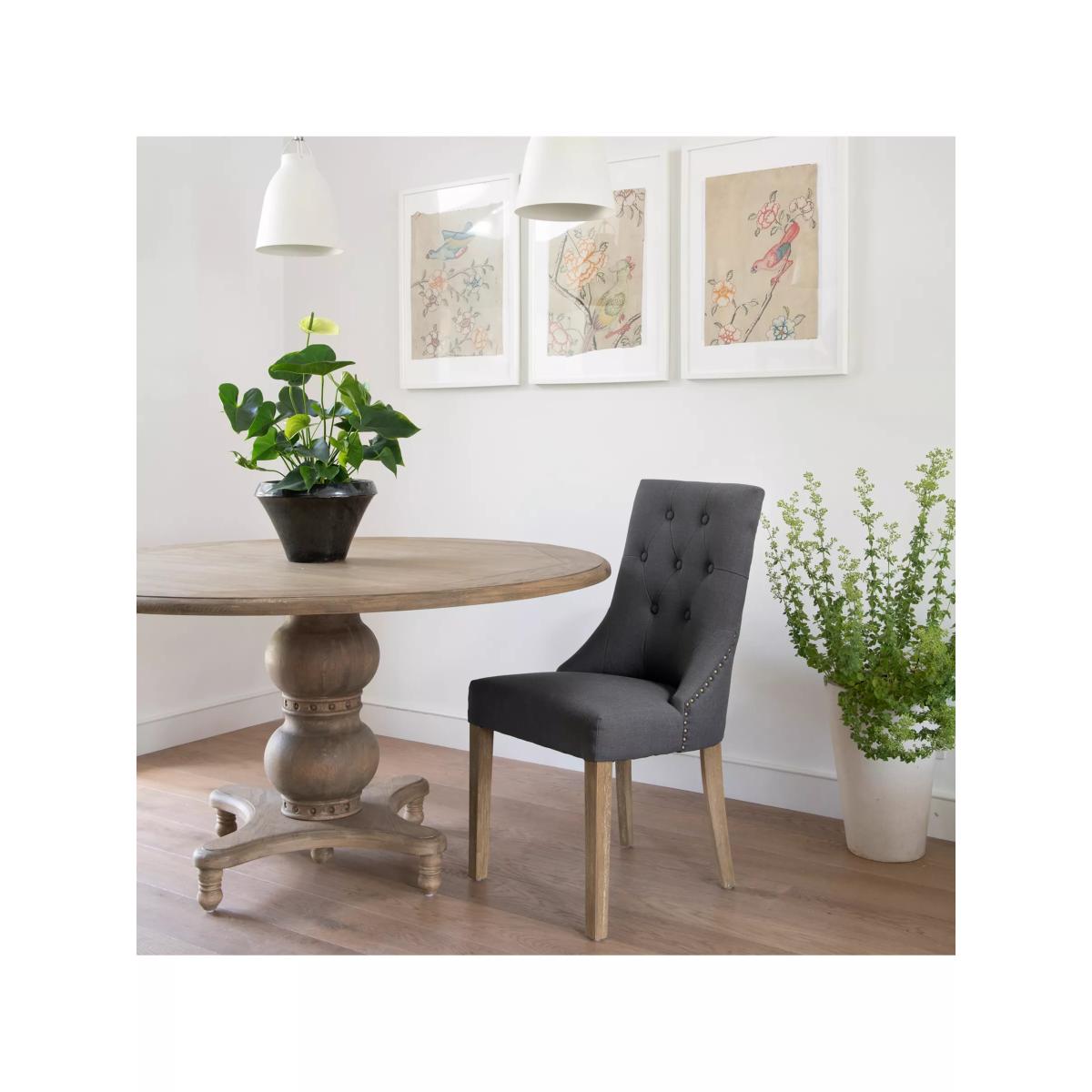 I love this chair for its blend of classic oak legs and the padded, studded detailing, which adds a subtle touch of texture and sophistication. It works particularly well in both modern and traditional interiors, especially in spaces that incorporate natural materials or a neutral colour palette. For styling, consider pairing it with a sleek, minimalist dining table or mixing with other wooden pieces for a more rustic look. Practical tips include using it as an accent chair in a cosy corner or as a statement piece at a breakfast nook, where its sturdy build and rich detailing can be appreciated. Its versatile design makes it a reliable choice for adding understated elegance to any dining environment.