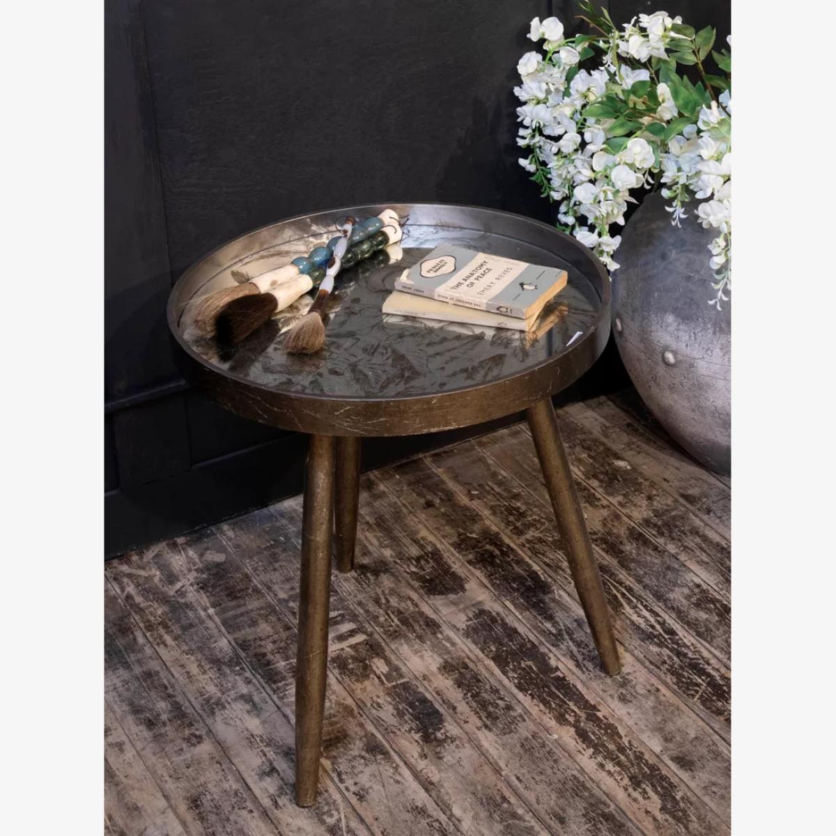 I love this little side table for its striking metal finish and versatile shape. It works well in both contemporary and eclectic interiors, adding a touch of glamour without feeling heavy. Its round top makes it perfect for occasional surfaces in living rooms or beside a bed, and the metallic finish adds a bit of visual interest-ideal for pairing with colourful or neutral décor. Practical styling tips include placing a small tray or a stack of books on top to keep it looking tidy, or adding a decorative vase or candle for a layered look. This table's simplicity and metallic sheen make it a stylish yet functional addition to most interiors.