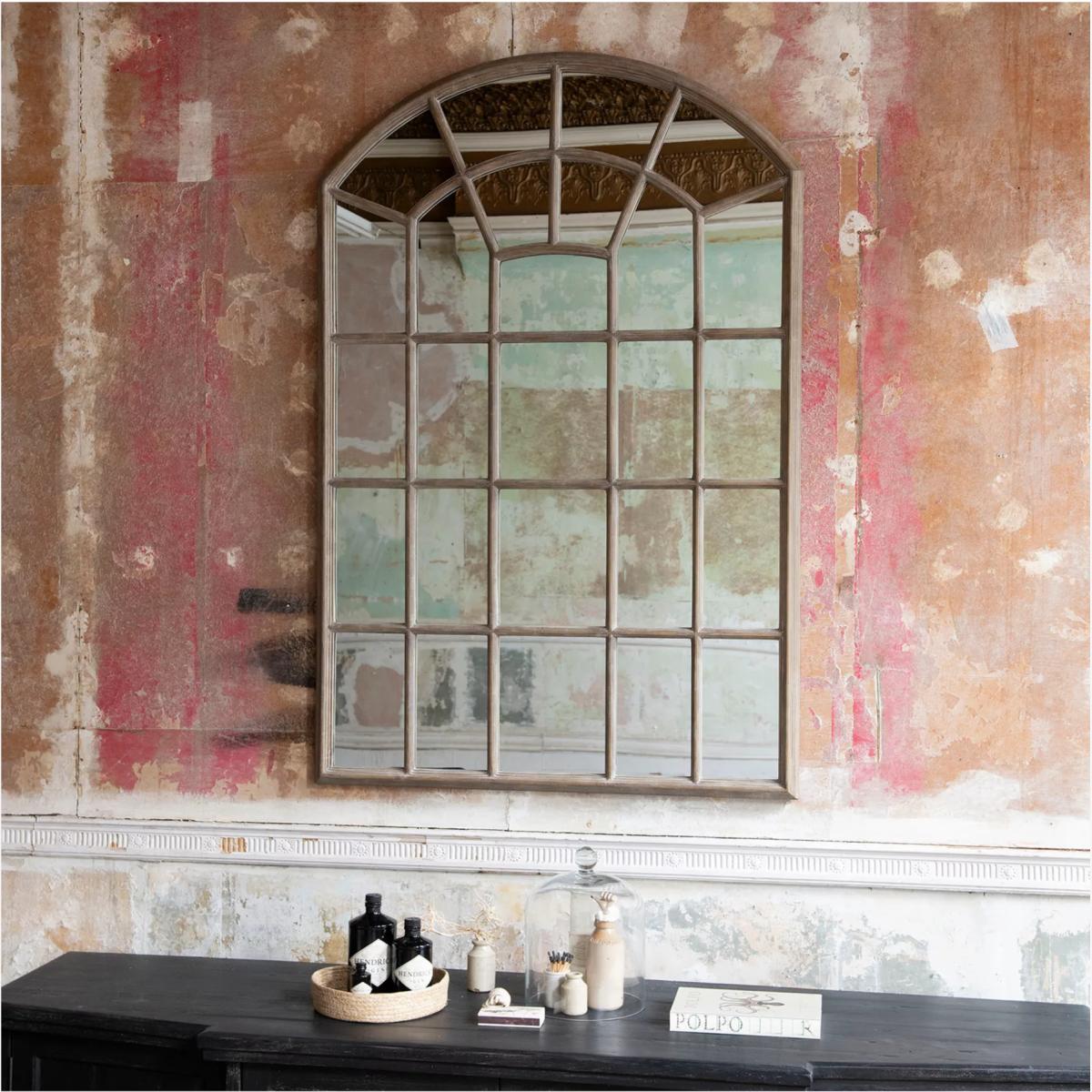 One.World Wilton Arched Wood Window Wall Mirror, 150 x 100cm, Natural