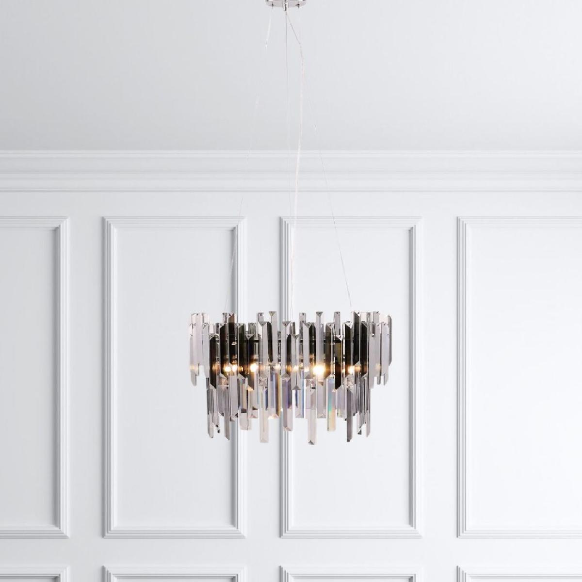 Elevate your space with the Onega 3-Light Smoked Chrome Glass Ceiling Pendant. Designed to impress, this stunning pendant features a two-tier polished chrome suspension fitting that adds a touch of elegance to any room. The chrome smoked prism glass jewels beautifully diffuse the light, creating a mesmerizing ambiance that enhances your space's aesthetic appeal. Whether you're looking to make a statement in your living room or add a luxurious touch to your dining area, the Onega pendant is the perfect choice. Part of the Onega family. Matching table lamp and floor lamp available. Elevate your space with the Onega 3-Light Smoked Chrome Glass Ceiling Pendant. Designed to impress, this stunning pendant features a two-tier polished chrome suspension fitting that adds a touch of elegance to any room. The chrome smoked prism glass jewels beautifully diffuse the light, creating a mesmerizing ambiance that enhances your space's aesthetic appeal. Whether you're looking to make a statement in your living room or add a luxurious touch to your dining area, the Onega pendant is the perfect choice. Part of the Onega family. Matching table lamp and floor lamp available.