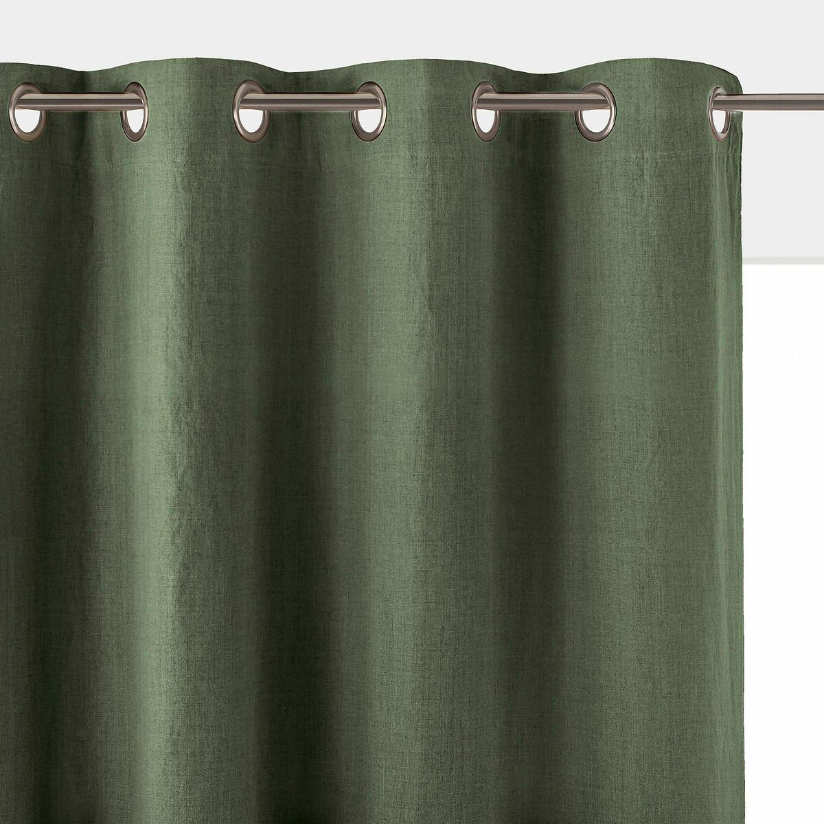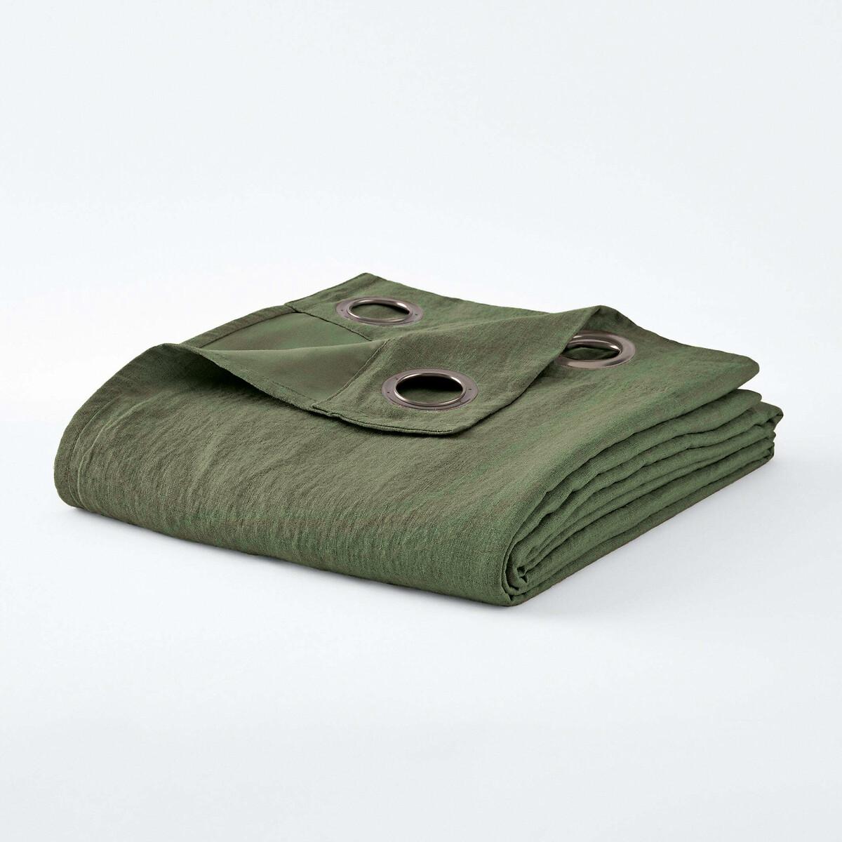 The Onega washed linen blackout curtain. A washed linen fabric with a slightly creased effect and a superb drape. The blackout lining in the same colour provides protection from light. This blackout curtain blocks out light and keeps your home private. Perfect for a bedroom without shutters. Some colours block light better than others, which is why choosing the colour of your curtain is important.. To guarantee an excellent level of blackout, we recommend that you opt for dark curtains, which are particularly effective at blocking out light and allowing you to create a dark room. The eyelets guarantee nice regular waves and ensure the fabric falls beautifully. They slide perfectly on the rod, making it easy to open and close the curtain. Product Details • Blackout • 100% linen, (160g/m²) • Washed linen • Tone-on-tone blackout lining, 100% polyester (darkening for light colours) • Top finish : eyelets in dark grey colour • Inner diameter of eyelets: 4cm/1.5" • Finished bottom : Plain hemmed edging. To help you in the choice and maintenance of your curtains, do not hesitate to consult our guide by typing "Curtain Buying Guide" in our search engine on the site. Care Advice • Machine washable at 30°C • Maximum shrinkage after washing : 7 to 10% approx. Fabrics made from natural fibres may shrink in the first wash. Always wash your curtains before making any alterations. • Do not tumble dry • If you don't need to iron them (linen curtains, Voile Panel...), let the curtains air dry by hanging them immediately after washing, making sure to spread them out to their full width. • If you want to iron your curtains, we recommend using a low-temperature steam iron or a steamer. Dimensions • Drop 180 x W135cm • OEKO-TEX® Standard 100. Standard 100 certification by OEKO-TEX® tests textile products for harmful substances via an independent, international label.