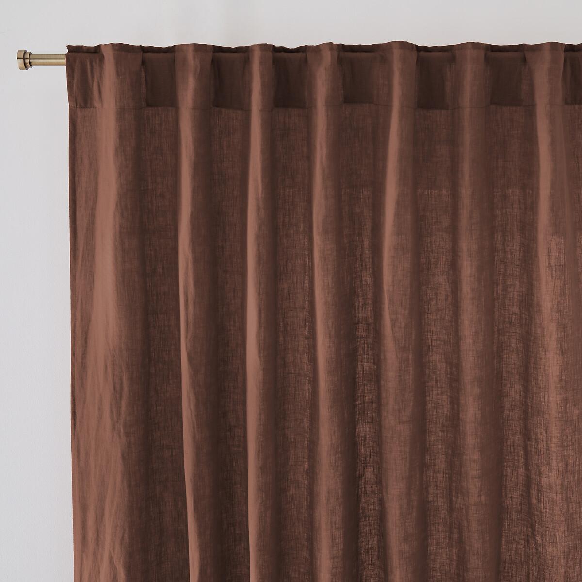 Onega washed linen curtain. Appreciated for its flexibility, washed linen embellishes and softens over time. Slightly wrinkled, it does not require ironing. The tabs give a regular wave to the curtain and an impeccable straight fall. Hidden behind the fabric for an impeccable finish, they also hide the rod. Product Details • Screening • 100% linen, (160g/m²) • Washed linen • Top finish : hidden legs • Finished bottom :Plain hemmed edging. To help you in the choice and maintenance of your curtains, do not hesitate to consult our guide by typing "Curtain Buying Guide" in our search engine on the site. Care instructions • Machine washable at 30°C • Maximum shrinkage after washing : 7 to 10% approx. Fabrics made from natural fibres may shrink in the first wash. Always wash your curtains before making any alterations. • Do not tumble dry • If you don't need to iron them (linen curtains, Voile Panel...), let the curtains air dry by hanging them immediately after washing, making sure to spread them out to their full width. • If you want to iron your curtains, we recommend using a low-temperature steam iron or a steamer. Dimensions • Drop 180 x W135cm • D220 x W135cm • D260 x W135cm • Drop 300 x W135cm • Drop 350 x W135cm • OEKO-TEX® Standard 100. Standard 100 certification by OEKO-TEX® tests textile products for harmful substances via an independent, international label.