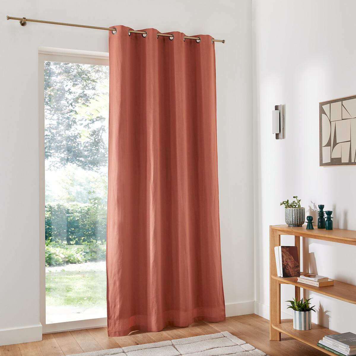 The Onega washed linen blackout curtain. The blackout lining of the same colour provides perfect protection against the light. Appreciated for its flexibility, washed linen embellishes and softens over time. Slightly wrinkled, ironing is unnecessary. This blackout curtain blocks out light and keeps your home private. Perfect for a bedroom without shutters. Some colours block light better than others, which is why choosing the colour of your curtain is important.. To guarantee an excellent level of blackout, we recommend that you opt for dark curtains, which are particularly effective at blocking out light and allowing you to create a dark room. The eyelets guarantee nice regular waves and ensure the fabric falls beautifully. They slide perfectly on the rod, making it easy to open and close the curtain. Product Details • Blackout • 100% linen, (160g/m²) • Washed linen • Tone-on-tone blackout lining, 100% polyester (darkening for light colours) • Top finish : eyelets in dark grey colour • Inner diameter of eyelets: 4cm/1.5" • Finished bottom : Plain hemmed edging. To help you in the choice and maintenance of your curtains, do not hesitate to consult our guide by typing "Curtain Buying Guide" in our search engine on the site. Care Advice • Machine washable at 30°C • Maximum shrinkage after washing : 7 to 10% approx. Fabrics made from natural fibres may shrink in the first wash. Always wash your curtains before making any alterations. • Do not tumble dry • If you don't need to iron them (linen curtains, Voile Panel...), let the curtains air dry by hanging them immediately after washing, making sure to spread them out to their full width. • If you want to iron your curtains, we recommend using a low-temperature steam iron or a steamer. Dimensions • Drop 180 x W135cm • D220 x W135cm • D260 x W135cm • Drop 350 x W135cm • OEKO-TEX® Standard 100. Standard 100 certification by OEKO-TEX® tests textile products for harmful substances via an independent, international label.