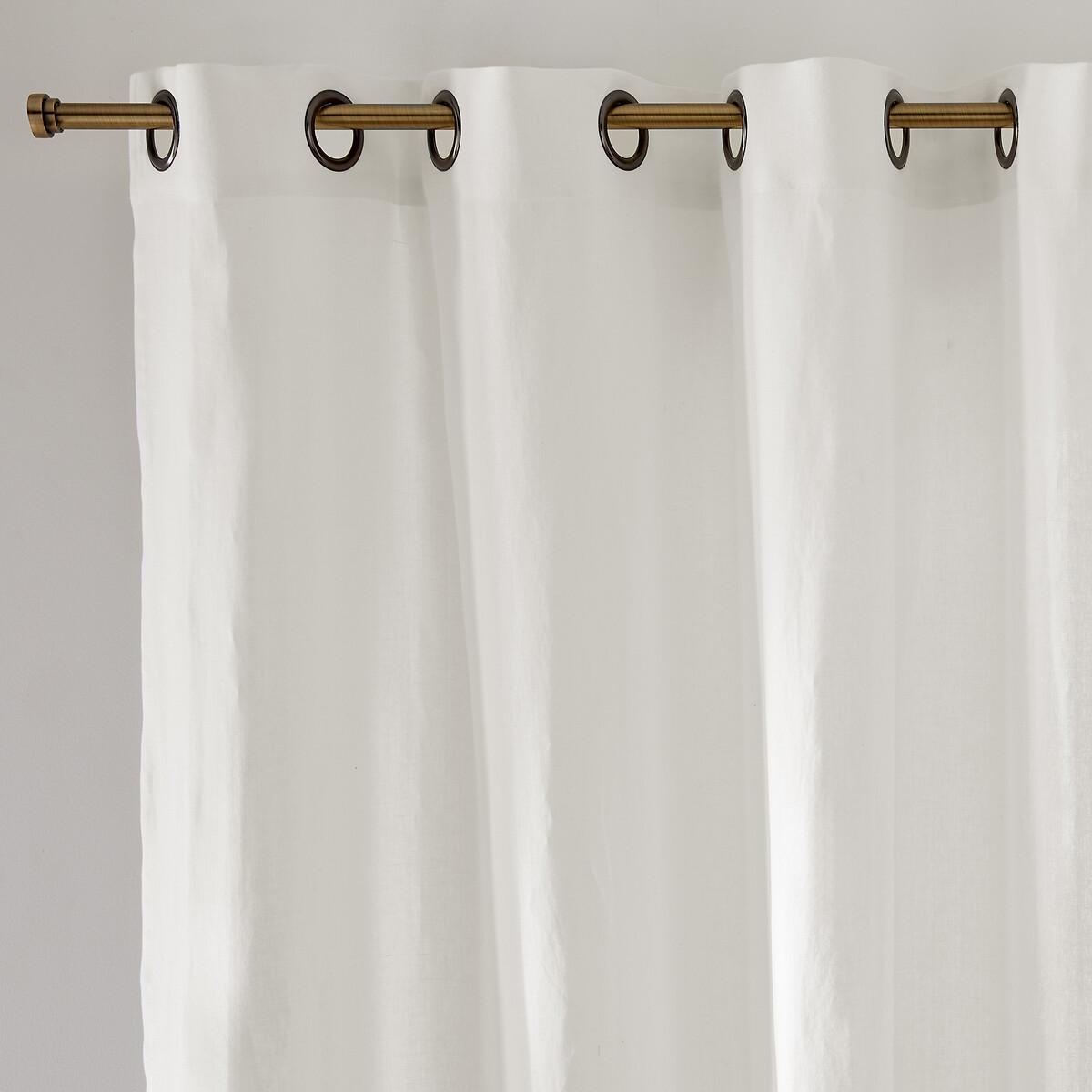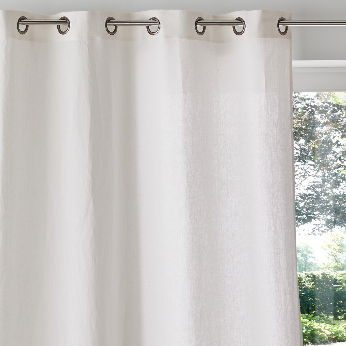 The plain Onega washed linen curtain. Appreciated for its flexibility, washed linen embellishes and softens over time. Slightly wrinkled, ironing is unnecessary. The eyelets guarantee nice regular waves and ensure the fabric falls beautifully. They slide perfectly on the rod, making it easy to open and close the curtain. Product Details • Screening • 100% linen, (160g/m²) • Washed linen • Top finish : eyelets in dark grey colour • Inner diameter of eyelets: 4cm/1.5" • Finished bottom :Plain hemmed edging. To help you in the choice and maintenance of your curtains, do not hesitate to consult our guide by typing "Curtain Buying Guide" in our search engine on the site. Care Advice • Machine washable at 30°C • Maximum shrinkage after washing : 7 to 10% approx. Fabrics made from natural fibres may shrink in the first wash. Always wash your curtains before making any alterations. • Do not tumble dry • If you don't need to iron them (linen curtains, Voile Panel...), let the curtains air dry by hanging them immediately after washing, making sure to spread them out to their full width. • If you want to iron your curtains, we recommend using a low-temperature steam iron or a steamer. Dimensions • Drop 180 x W135cm • D220 x W135cm • D260 x W135cm • Drop 350 x W135cm • OEKO-TEX® Standard 100. Standard 100 certification by OEKO-TEX® tests textile products for harmful substances via an independent, international label.