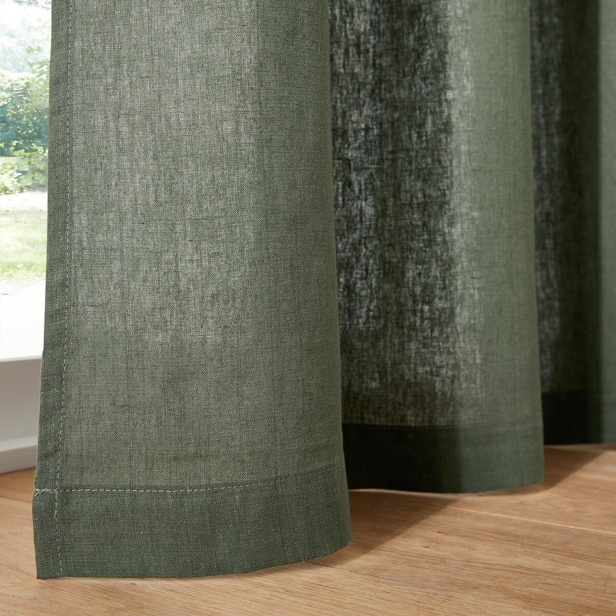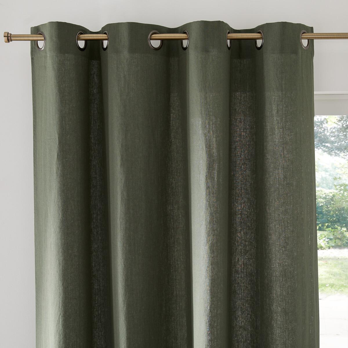 The plain Onega washed linen curtain. Appreciated for its flexibility, washed linen embellishes and softens over time. Slightly wrinkled, ironing is unnecessary. The eyelets guarantee nice regular waves and ensure the fabric falls beautifully. They slide perfectly on the rod, making it easy to open and close the curtain. Product Details • Screening • 100% linen, (160g/m²) • Washed linen • Top finish : eyelets in dark grey colour • Inner diameter of eyelets: 4cm/1.5" • Finished bottom :Plain hemmed edging. To help you in the choice and maintenance of your curtains, do not hesitate to consult our guide by typing "Curtain Buying Guide" in our search engine on the site. Care Advice • Machine washable at 30°C • Maximum shrinkage after washing : 7 to 10% approx. Fabrics made from natural fibres may shrink in the first wash. Always wash your curtains before making any alterations. • Do not tumble dry • If you don't need to iron them (linen curtains, Voile Panel...), let the curtains air dry by hanging them immediately after washing, making sure to spread them out to their full width. • If you want to iron your curtains, we recommend using a low-temperature steam iron or a steamer. Dimensions • Drop 180 x W135cm • D220 x W135cm • D260 x W135cm • Drop 350 x W135cm • OEKO-TEX® Standard 100. Standard 100 certification by OEKO-TEX® tests textile products for harmful substances via an independent, international label.