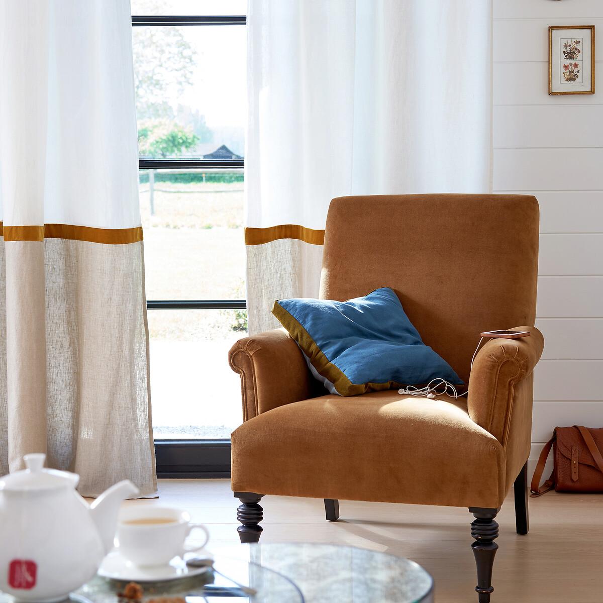 A mixture of styles. The lightness of washed linen combined with the elegance of velvet: presenting Onega x Velvet. Created by La Redoute Interiors.