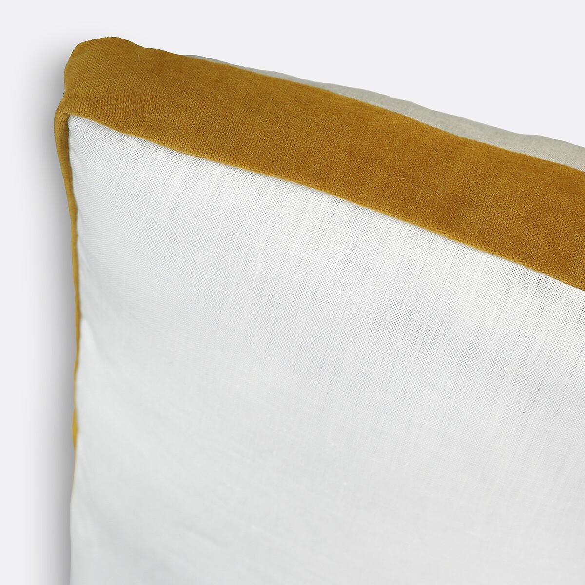 A mixture of styles. The lightness of washed linen combined with the elegance of velvet: presenting Onega x Velvet. Created by La Redoute Interiors. Product Details • 100% linen • Washed linen • Cotton velvet panel • Different colours on either side • Concealed zip fastening • Dimensions • 40 x 40cm • OEKO-TEX® Standard 100. Standard 100 certification by OEKO-TEX® tests textile products for harmful substances via an independent, international label.