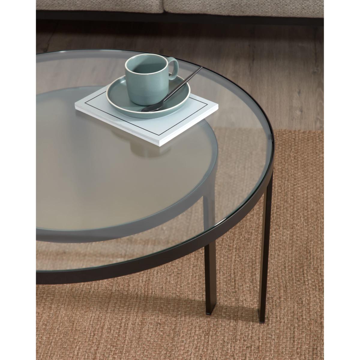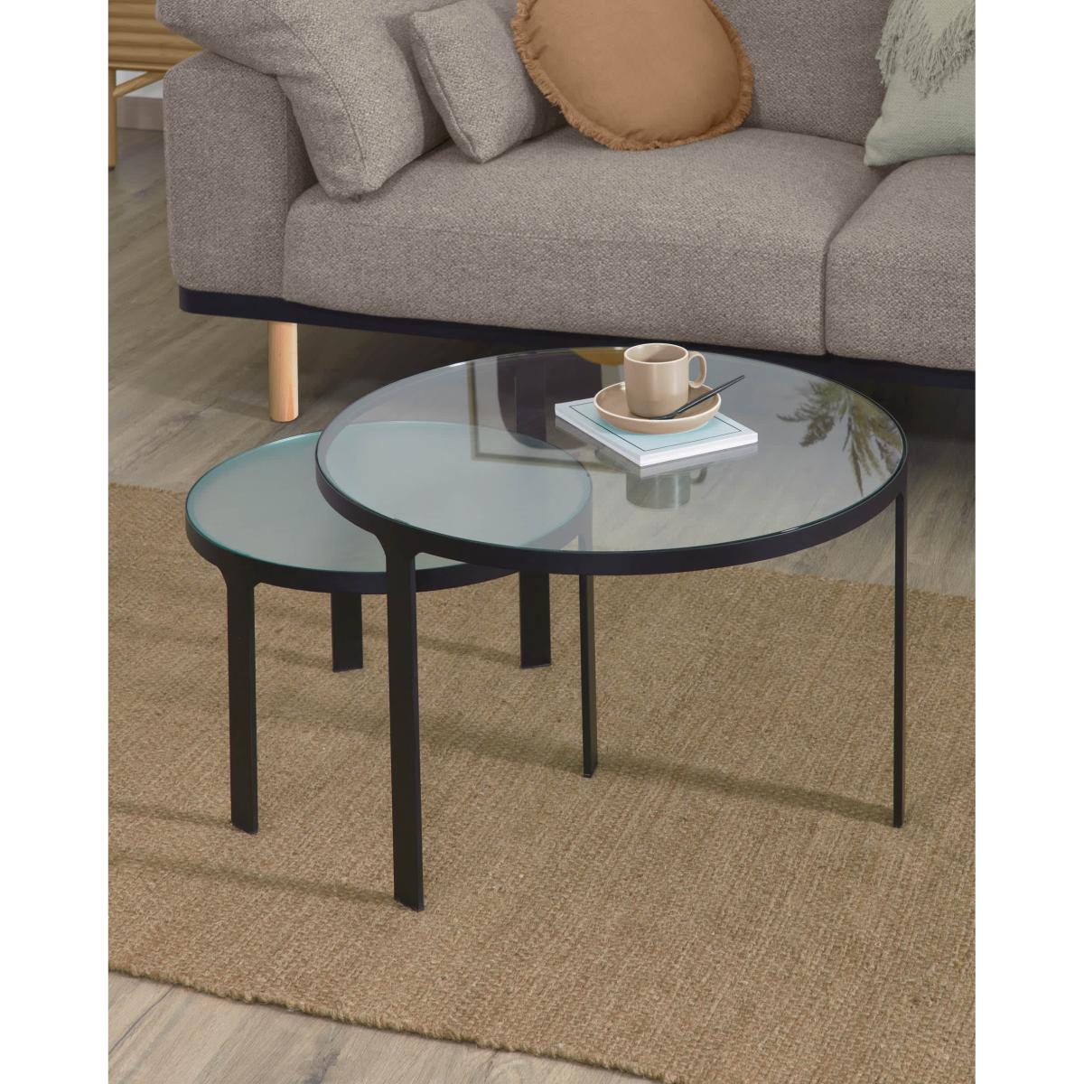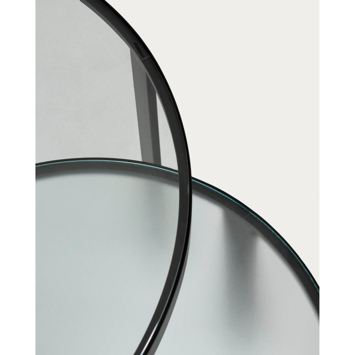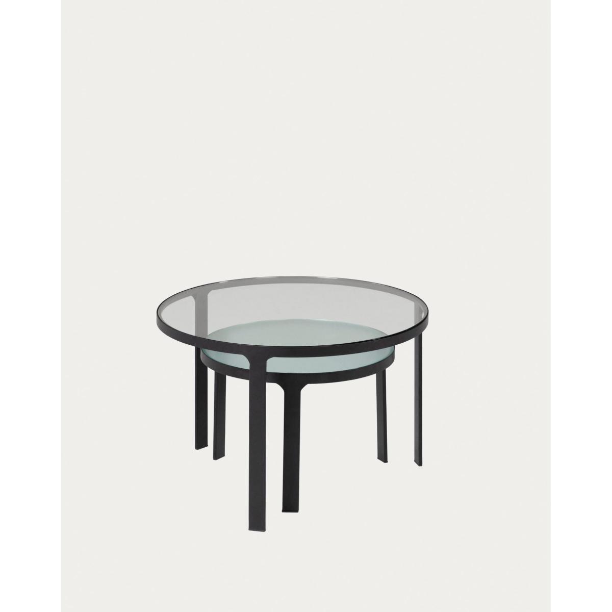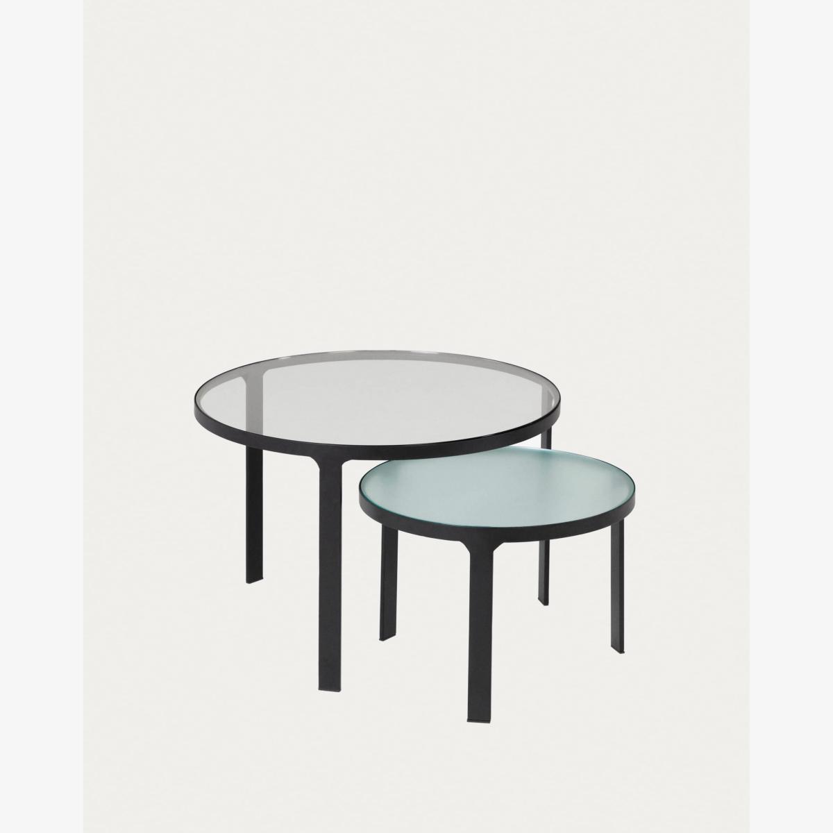 This set of 2 side tables of Ø 70 cm and Ø 50 cm is made to be your perfect ally in any occasion, alone or with your guests, just taking a small space. You will love the contrasts between the two tables, one with a transparent top and, the other, made with textured glass.